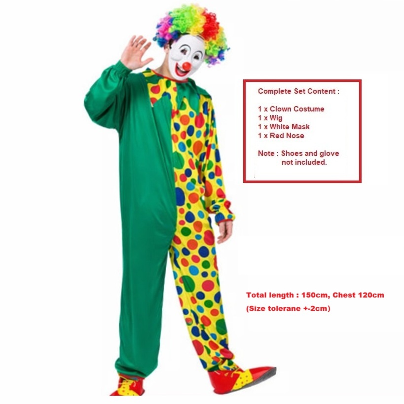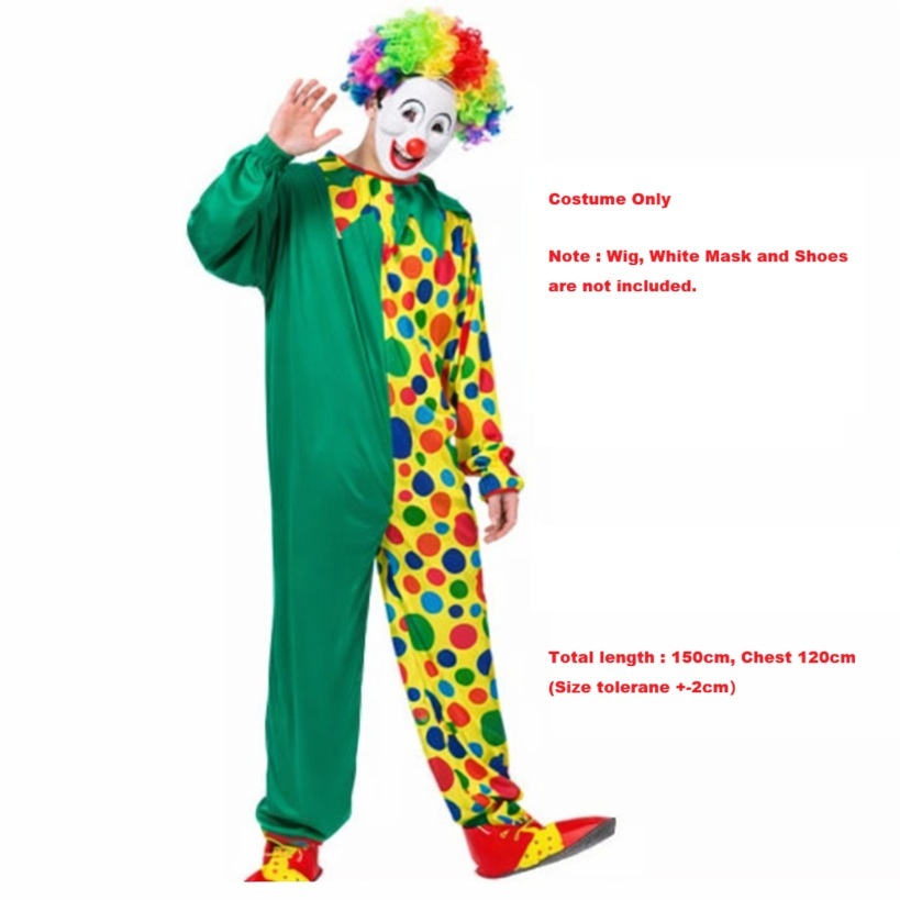 Adult Circus clown Costume Halloween Fancy Clown Men Colorful Carnival Clown Costume