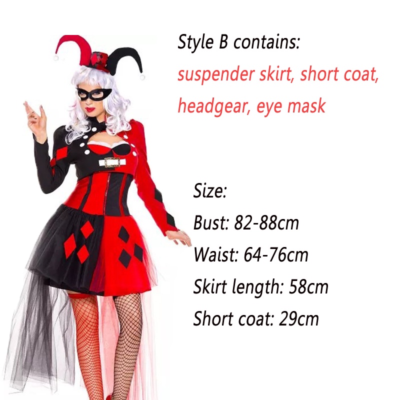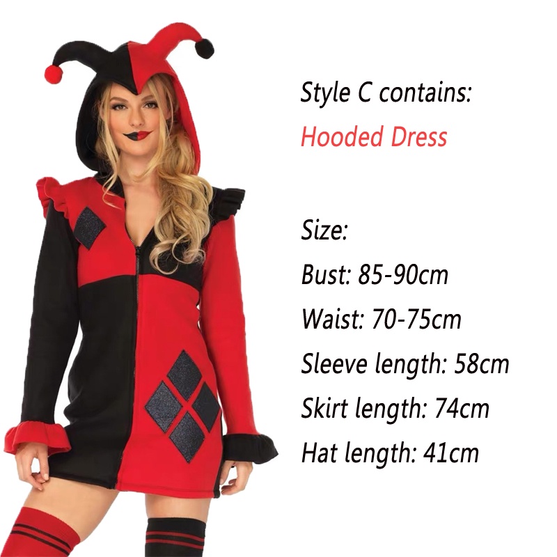 Adult Harley Quinn Costume Funny Clown Women Cosplay Halloween Joker Fancy Suit Girls Carnival Nightclub Party Costume