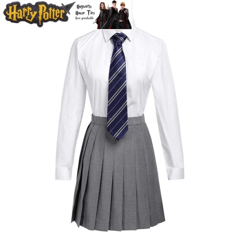 Adult Kids Harry Potter Merchandise School Uniform White Shirt Tie for men and women Hermin Preppy Style Gray Pleated Skirt Gryffindor Slytherin Hufflepuff Ravenclaw Suit