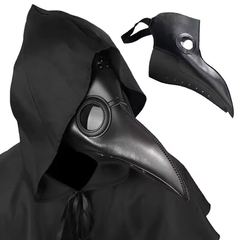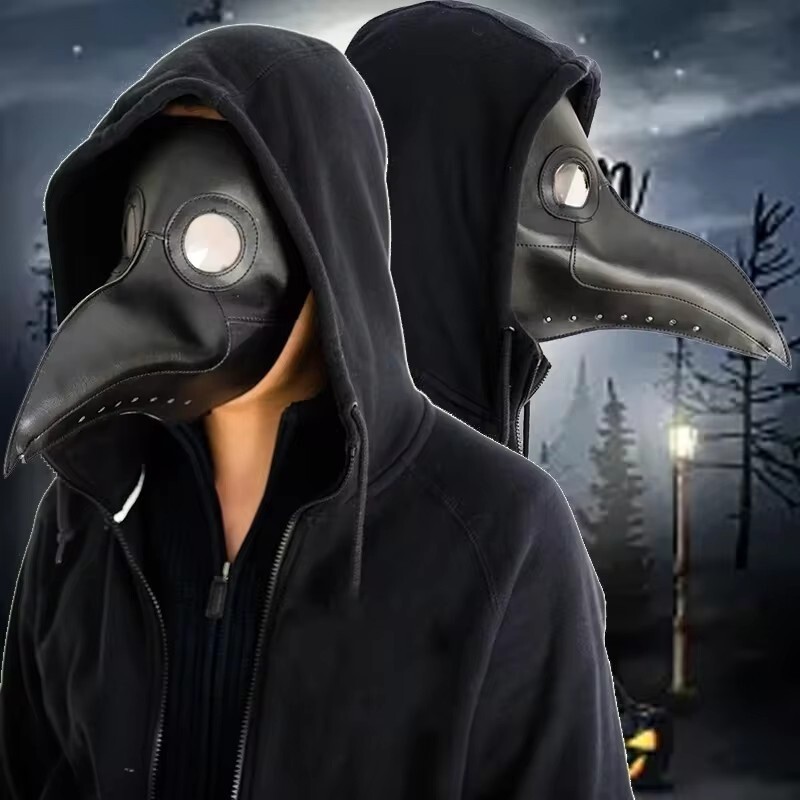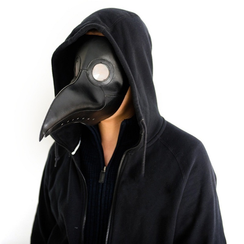 Adult Steam Punk Scary Plague Doctor Mask Halloween Masquerade Carnival Cosplay Black PU Leather Bird Beak Mask Props