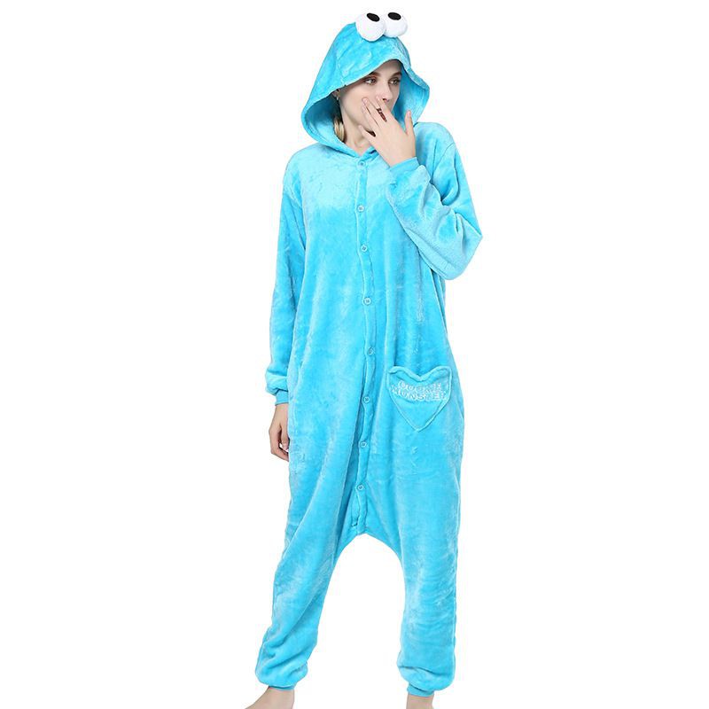 Adult Women Sesame Street Elmo Cookie Monster Costume Pajamas Onesie Sleepwear