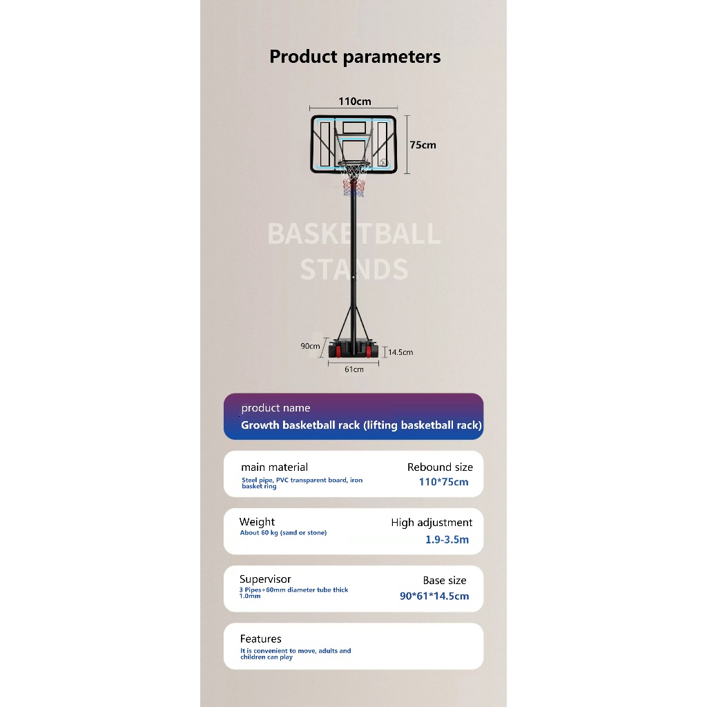 Adult standard basketball hoop 10FT Outdoor basketball court Movable basketball goal