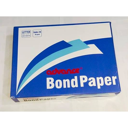 Advance Bond Paper Letter Size, short bond paper, 8 1/2" x 11" 500 Sheets 1 Ream Subs 20 70 gsm
