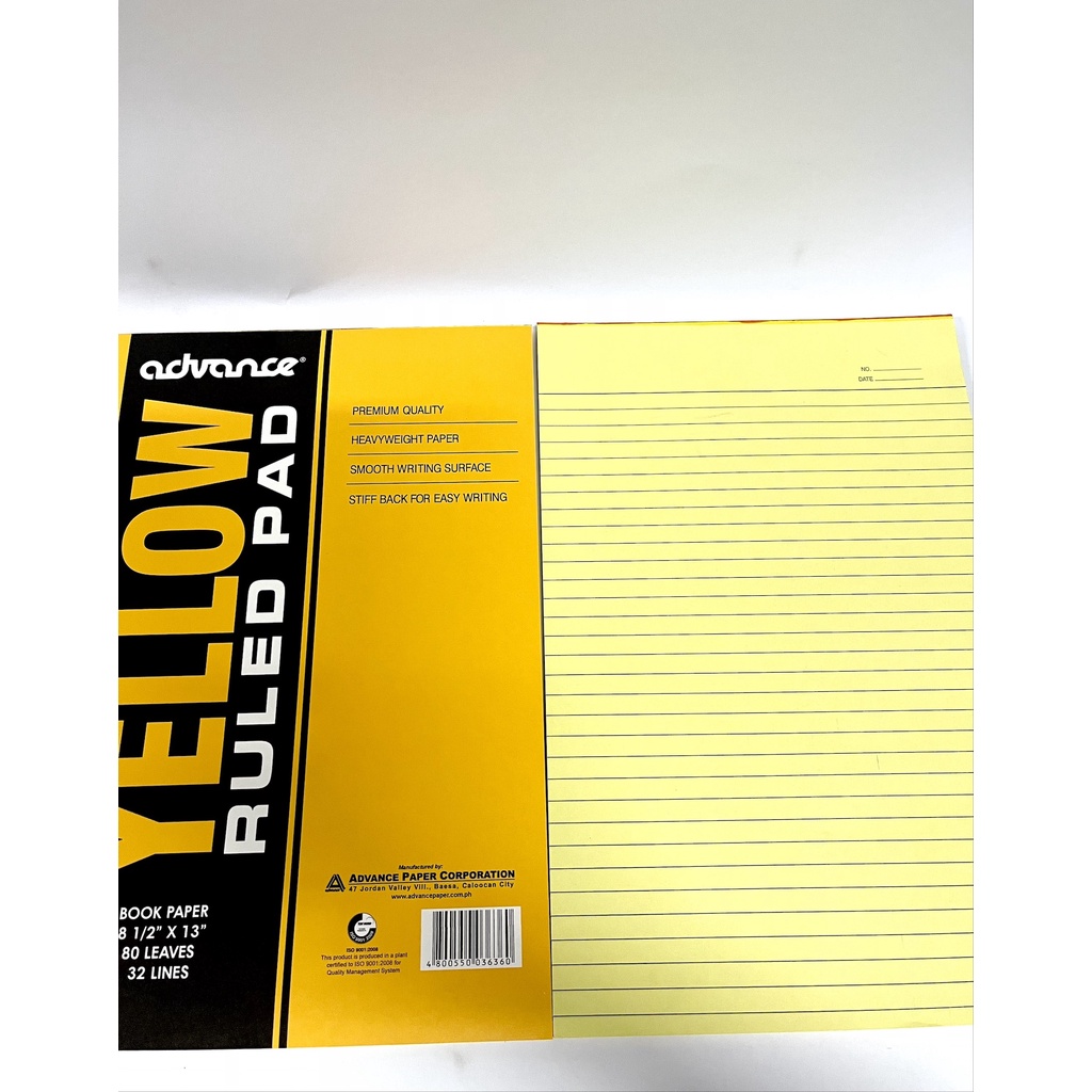 Advance Yellow Pad Paper l sold per REAM 10 pads l Long Writing Pad l 80 Leaves l l Book Paper