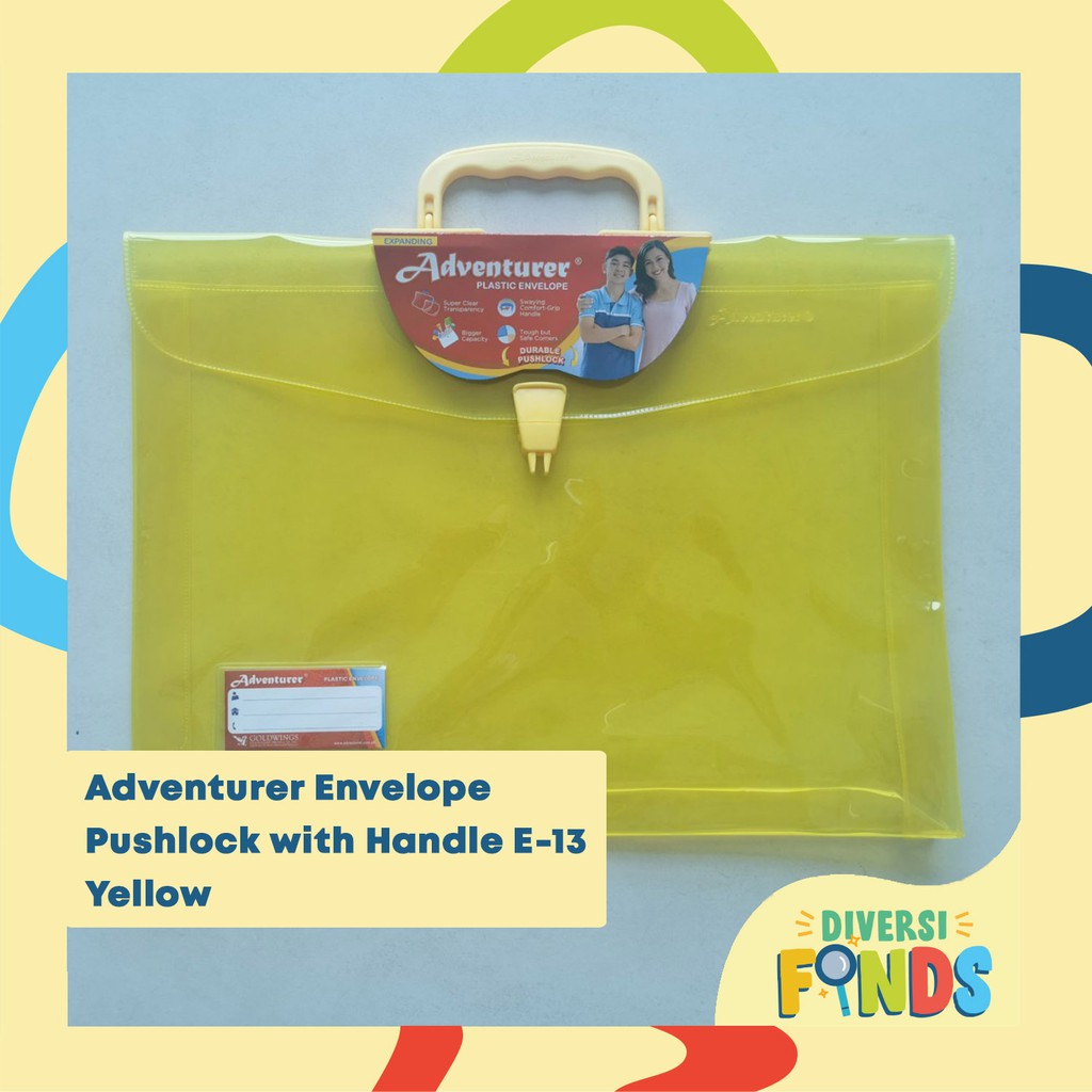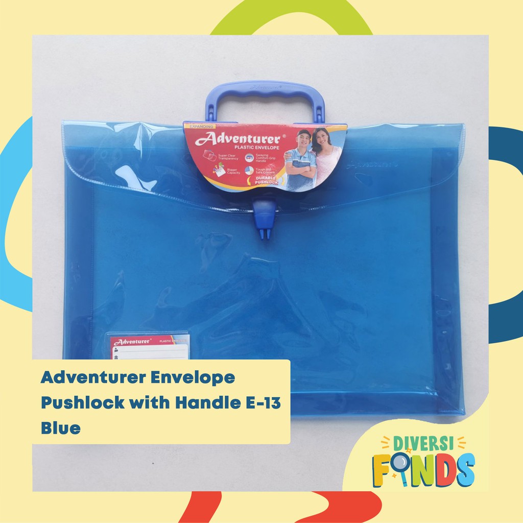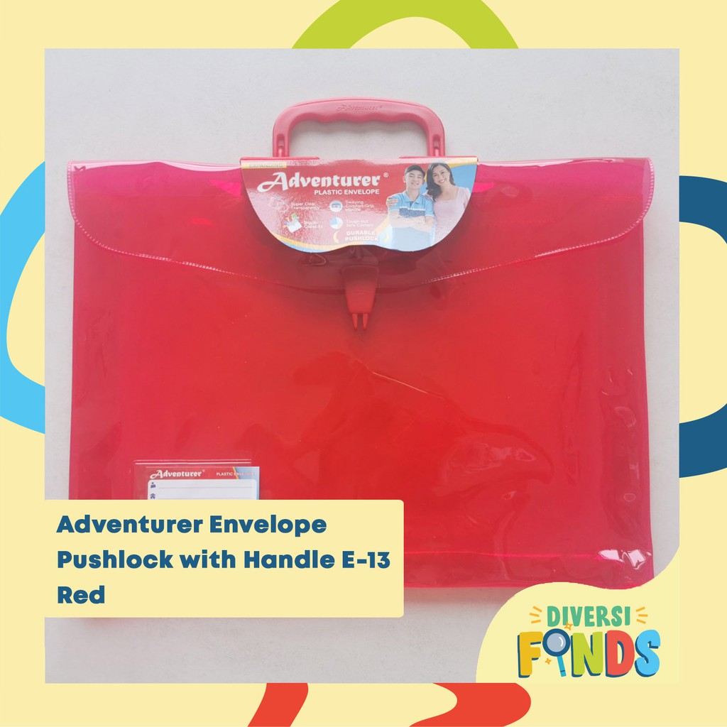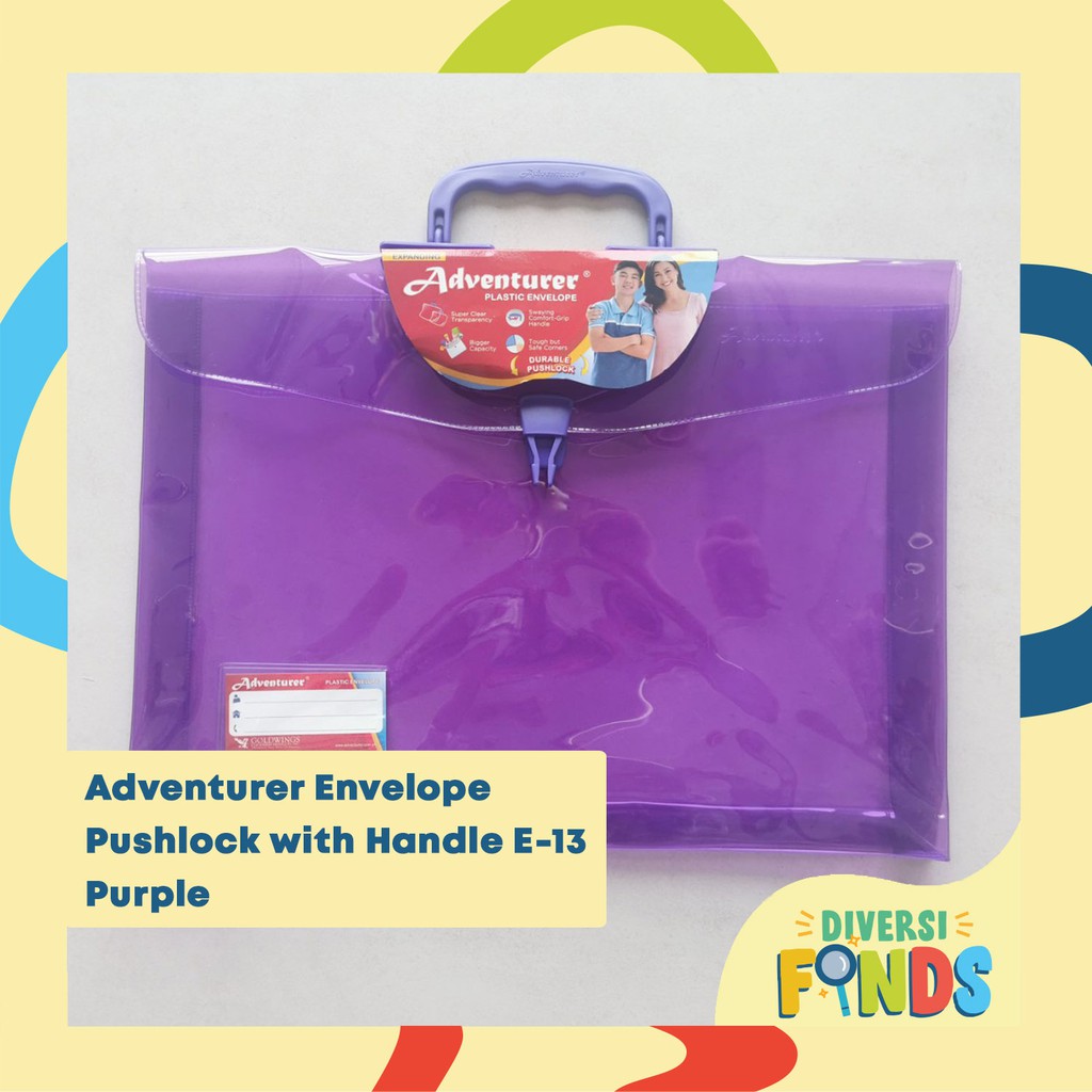 Adventurer Plastic Envelope with Handle- Pushlock - E-13 - Asstd. Colors - THICK AND DURABLE-LONG