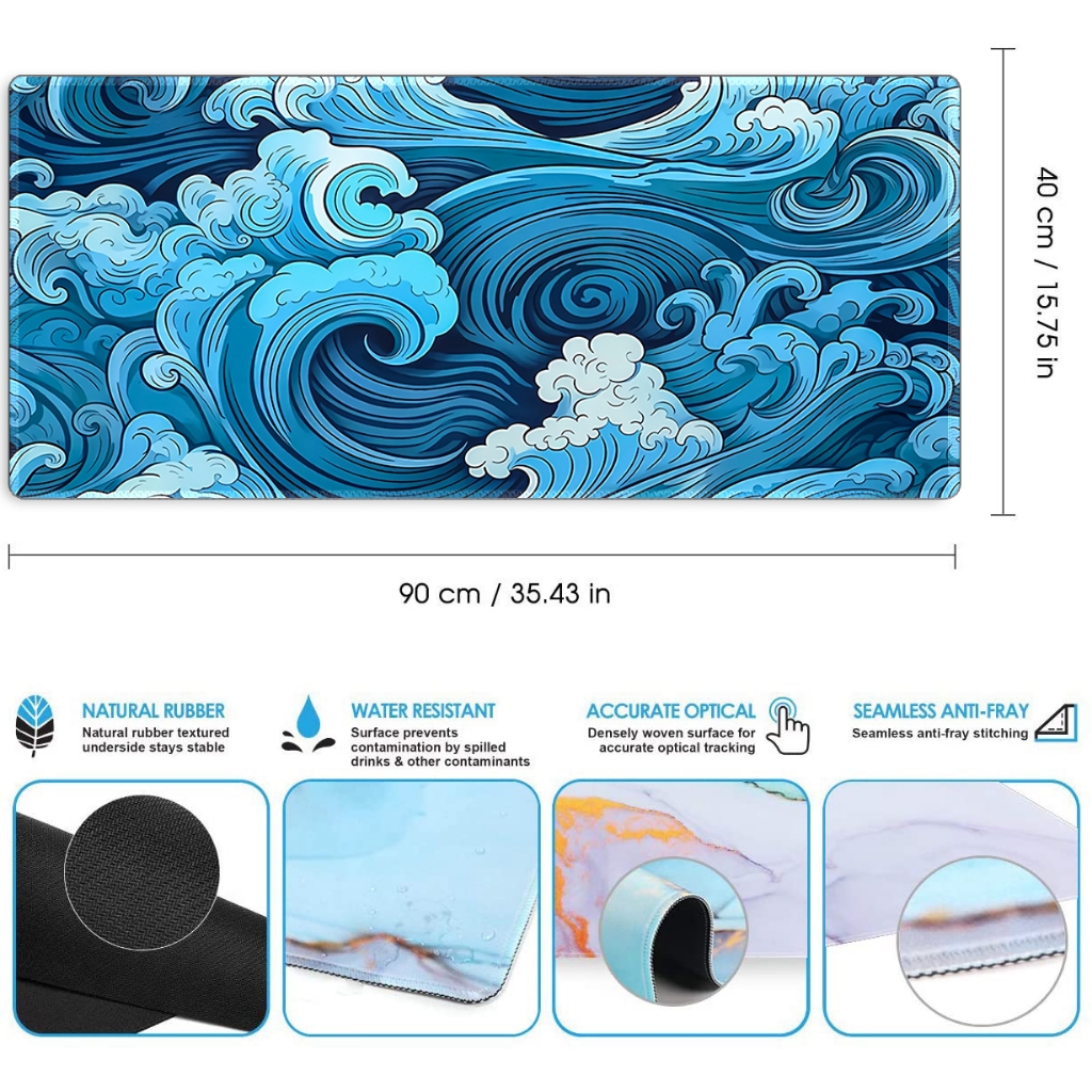 Aesthetic Desk Mat Art Japanese XXL Gaming Mouse Pad Blue Mousepad 900x400 Beautiful Nature Rubber Desk Pad Mat