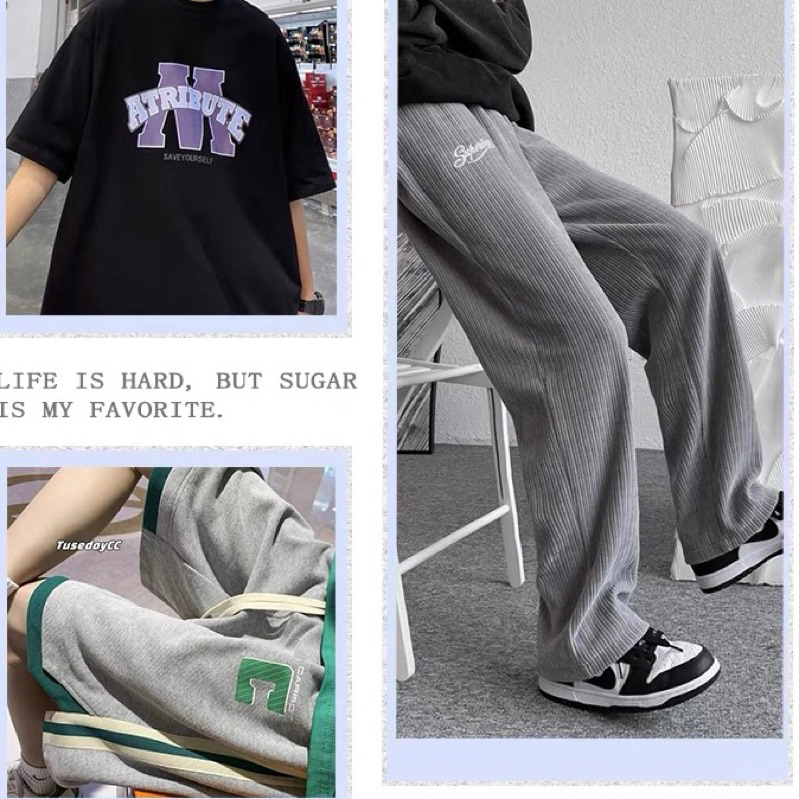 Aesthetic Pants for Men Korean Sweatpant Wide Leg Baggy Pants Slocks Pants Loose Straight Cut Pants
