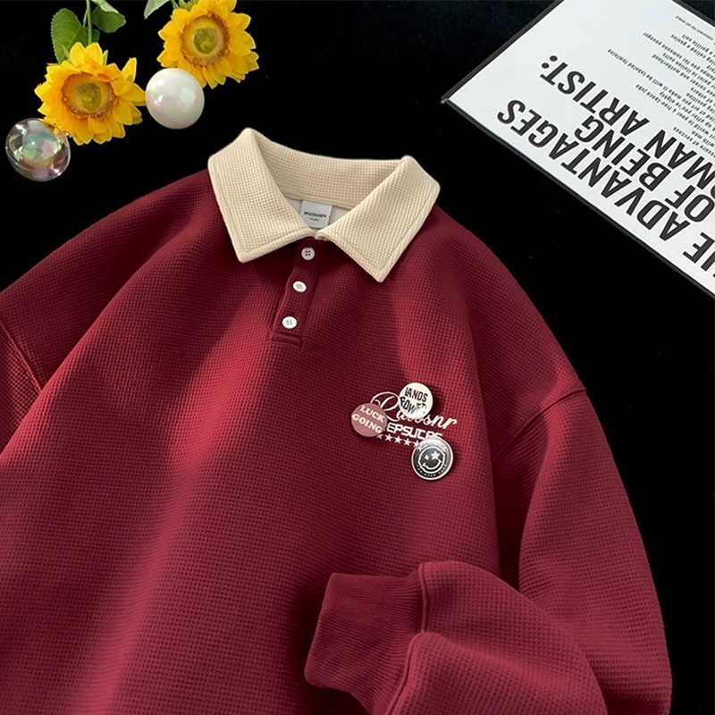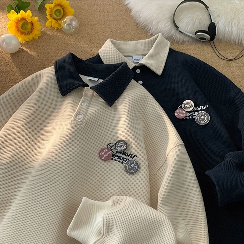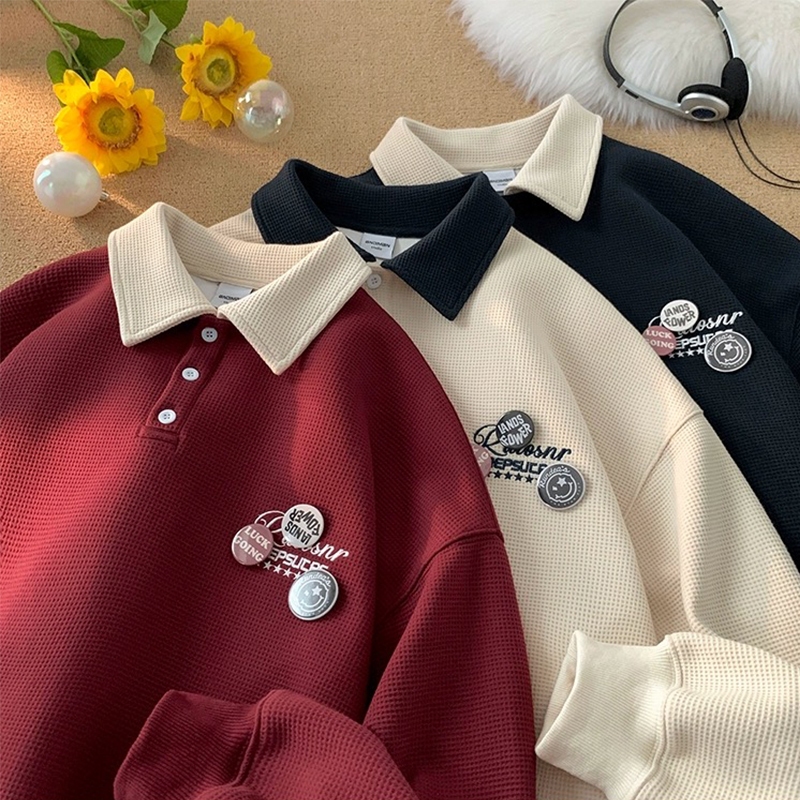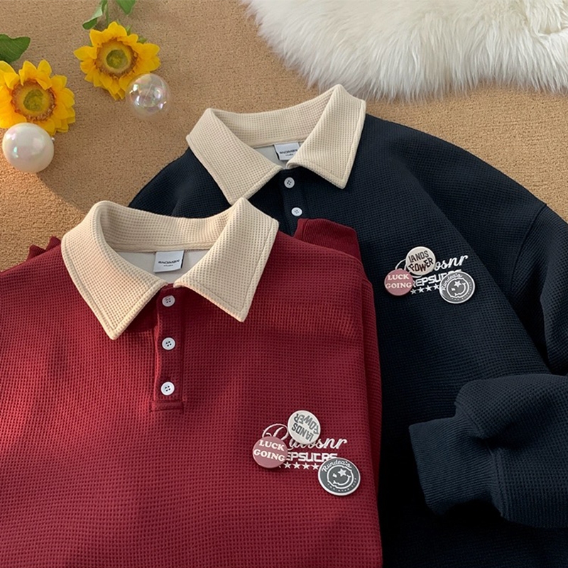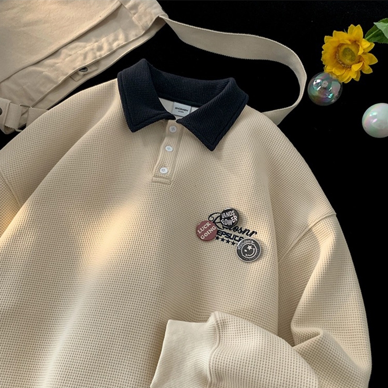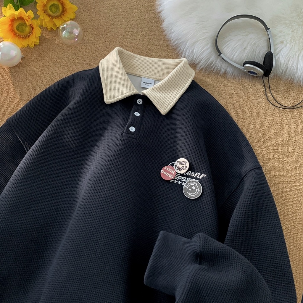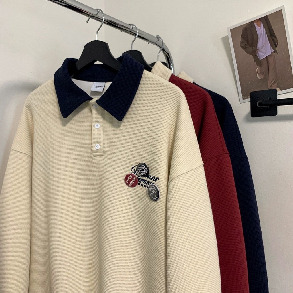 Aesthetic jacket for men Korean shirt casual long sleeve polo original collar polo shirt loose polo