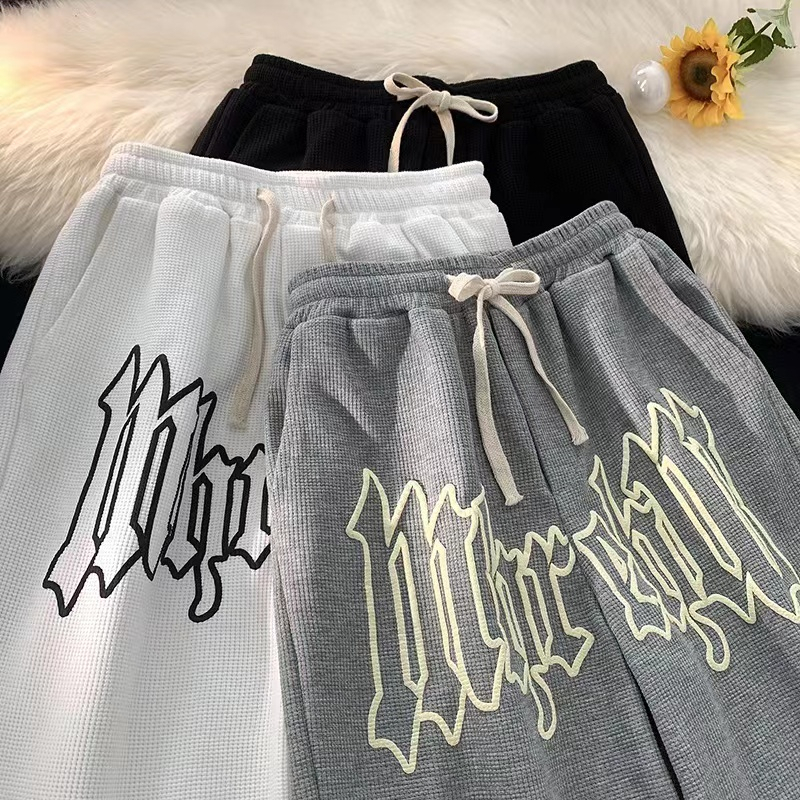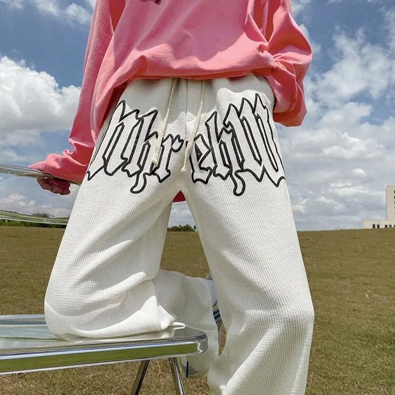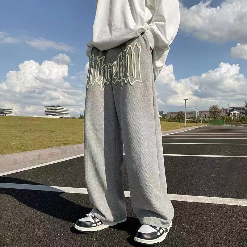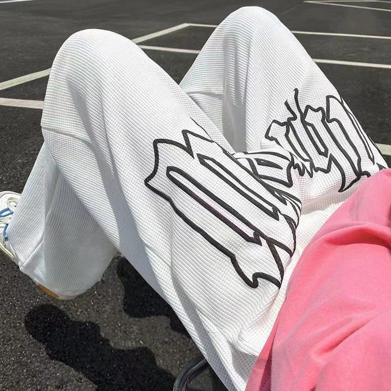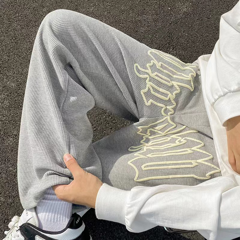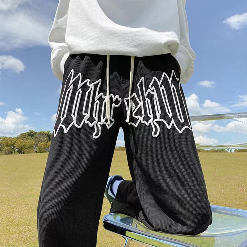 Aesthetic pants for men high quality oversized pants wide leg waffle pants casual baggy sweatpants