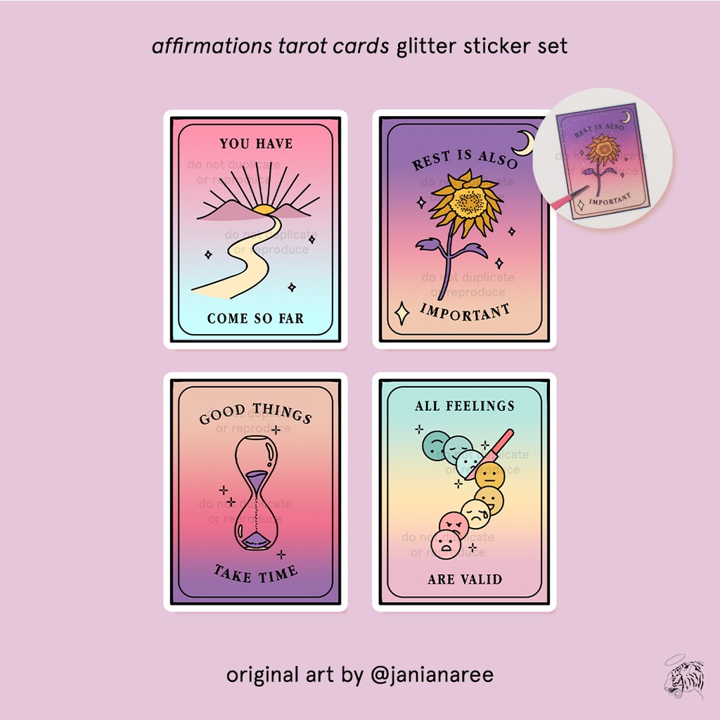 Affirmations Tarot Cards Sticker Set (Tags: aesthetic deco sticker bujo diecut)