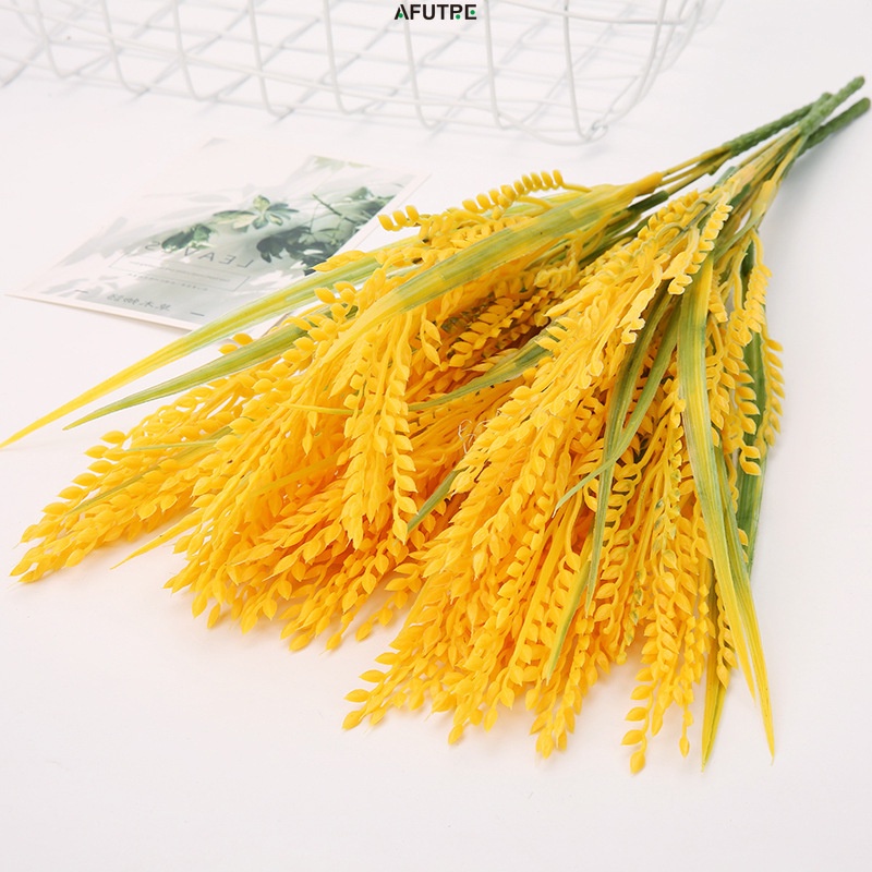 Afutre 2Pcs Simulated Crops Artificiales Rice Wheat Ears Fake Flowers Arrangement Fake Rice Plants Decor Plastic Wheat Ear Props