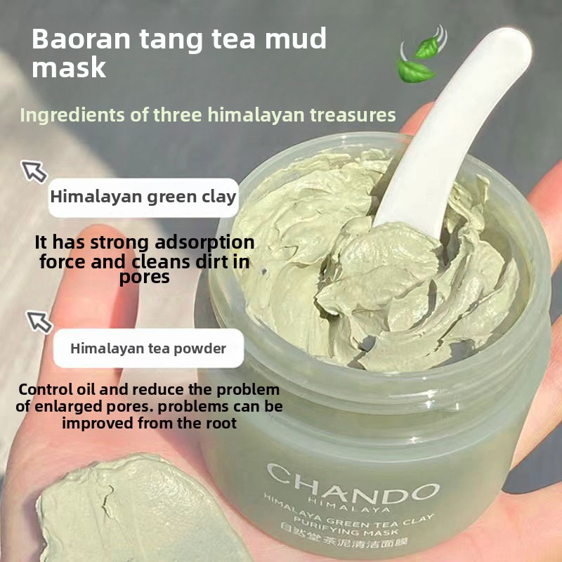 CHANDO Mud Mask for Oil Control Shrinking Pores Blackhead Removal Deep Cleaning Men's and Women's Tea Mud Mask 100g
