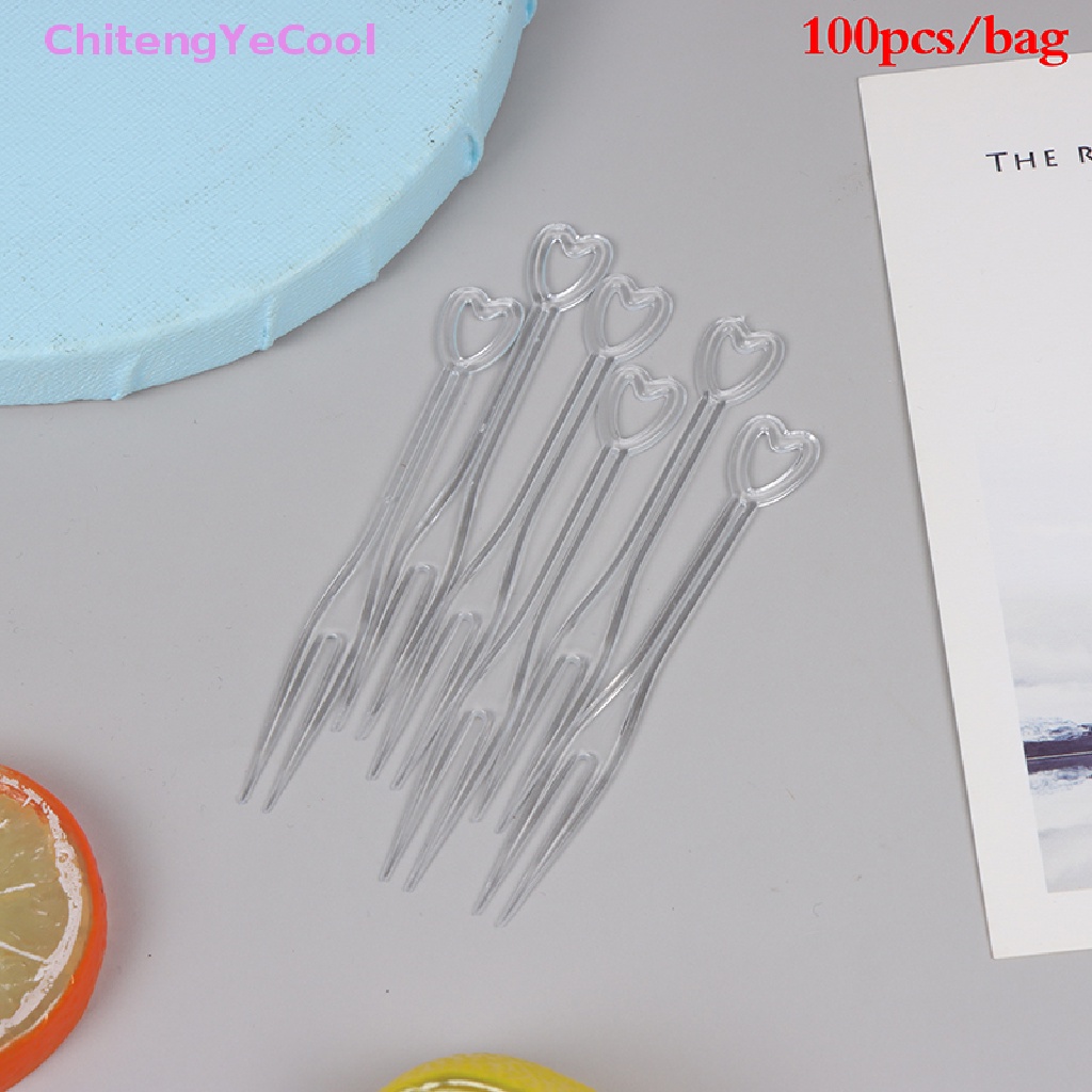 【HGPH】 100pcs/bag Fruit Fork Clear Plastic Forks Home Dining Food Cake Fruit Fork Hot
