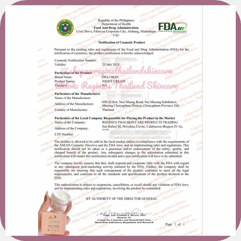 DELI(w!SKINU~NIGHT$vB^CREAM/vG^FOR/xX^ACNES/MELASMA//L^DULL/C^SKIN/a^FROM THAILAND (5g)