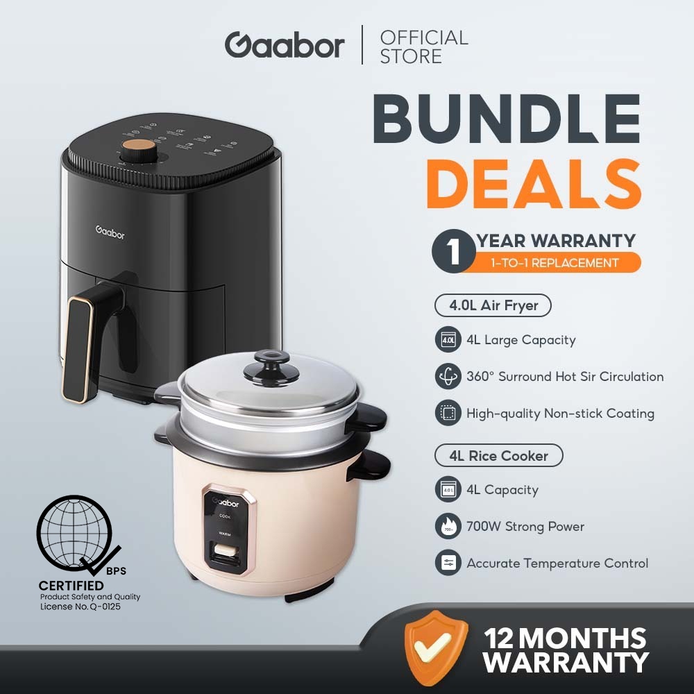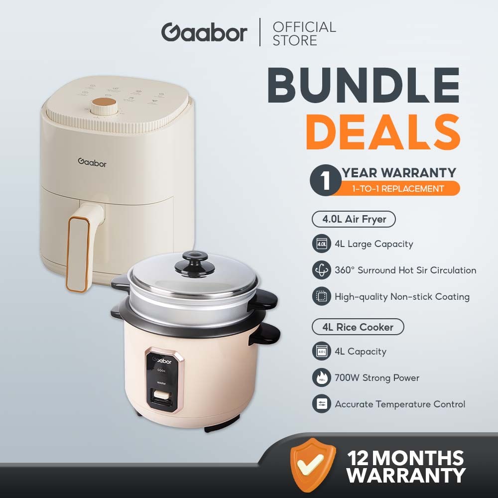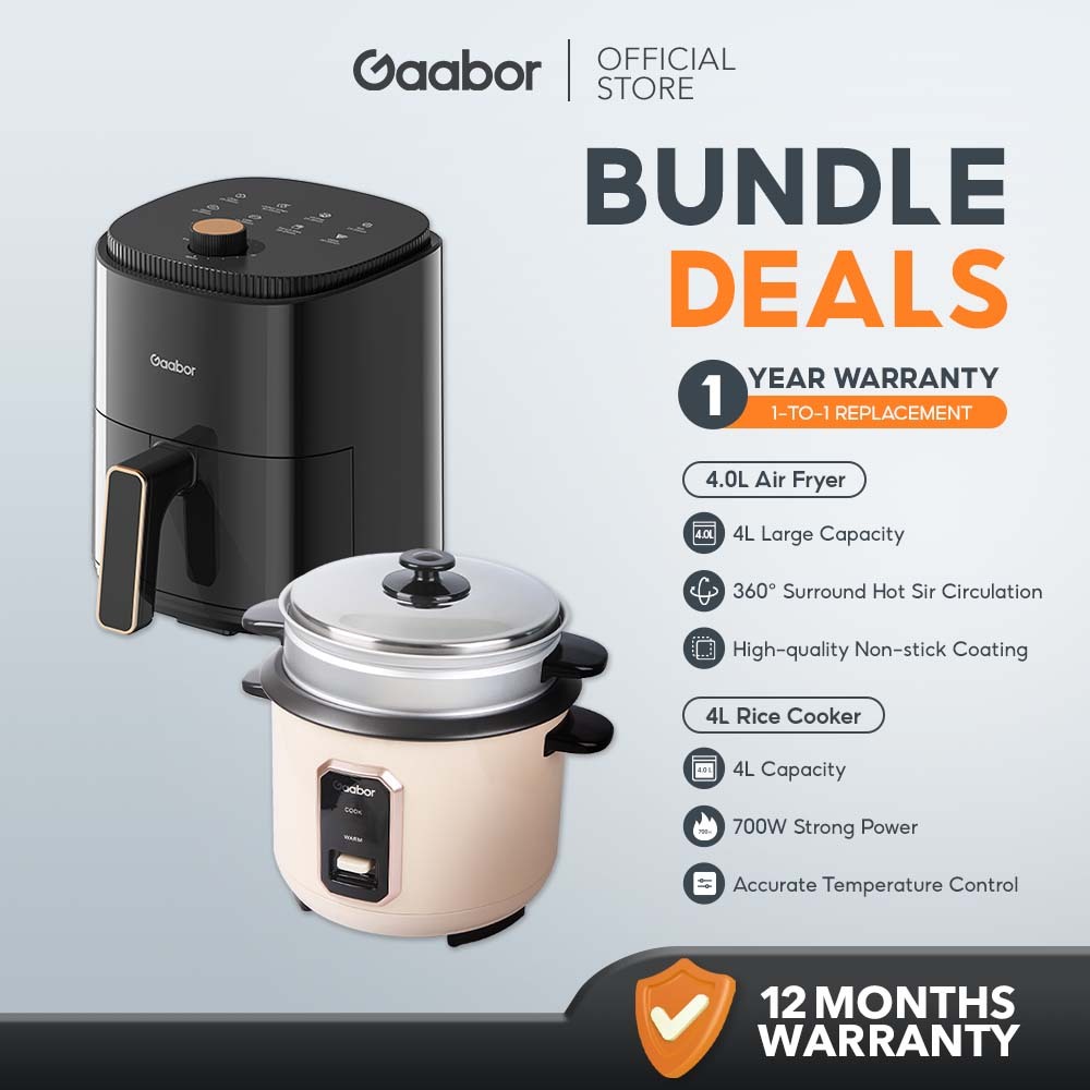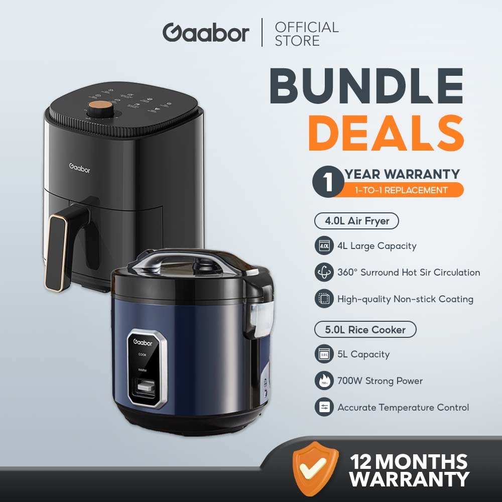 [Bundle] Gaabor Digital Display 4L Air Fryer Viewable Window and 1.8L(Rated 4L) /5L Rice Cooker