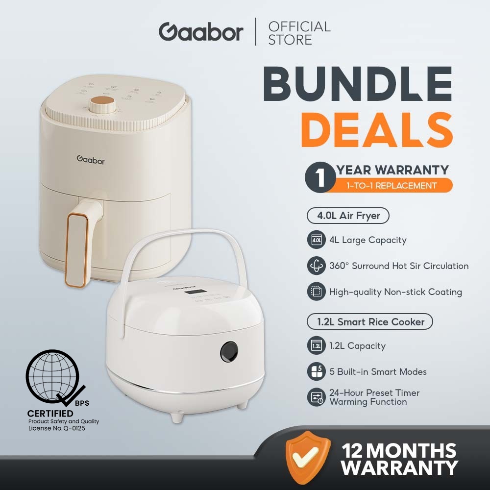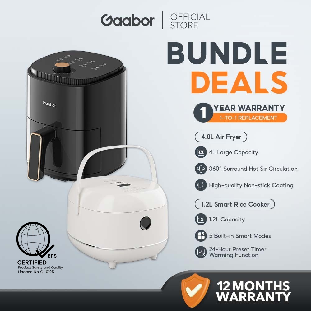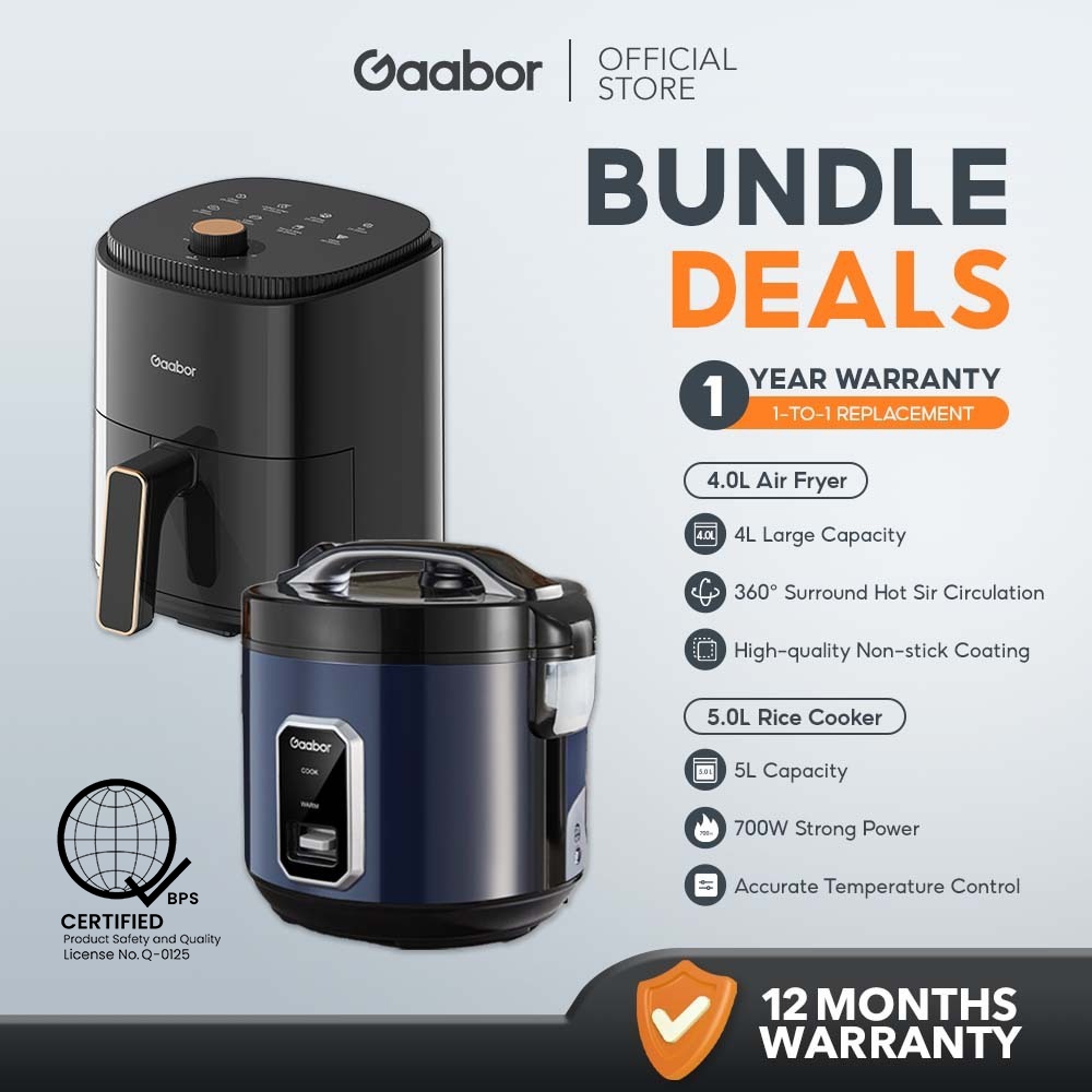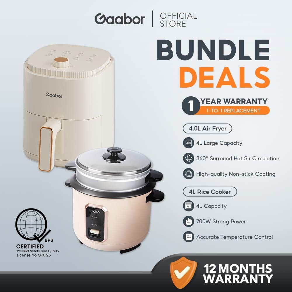 [Bundle] Gaabor Digital Display 4L Air Fryer Viewable Window and 1.8L(Rated 4L) /5L Rice Cooker