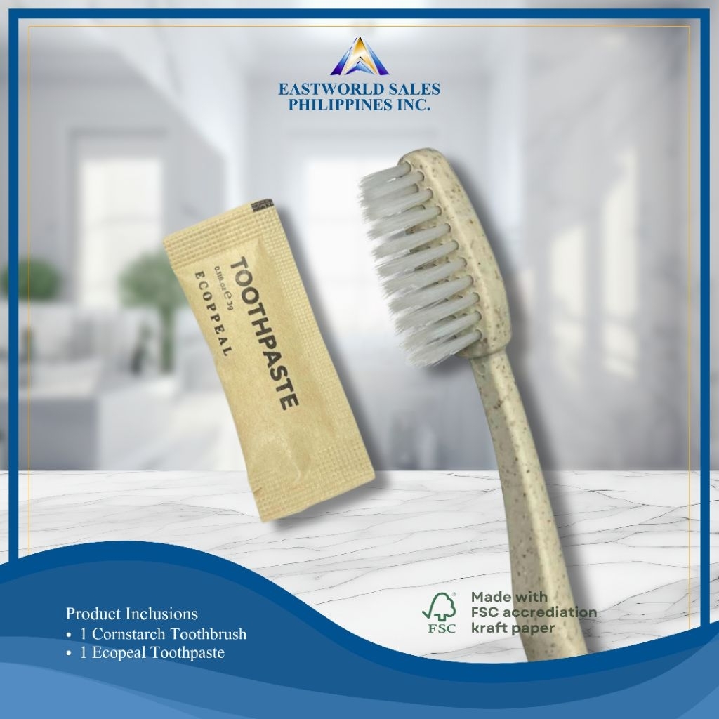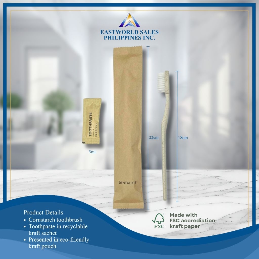 Eco-Friendly Hotel Dental Kit (20/50/100pcs) | Toothbrush & Toothpaste in Brown Kraft Paper Box