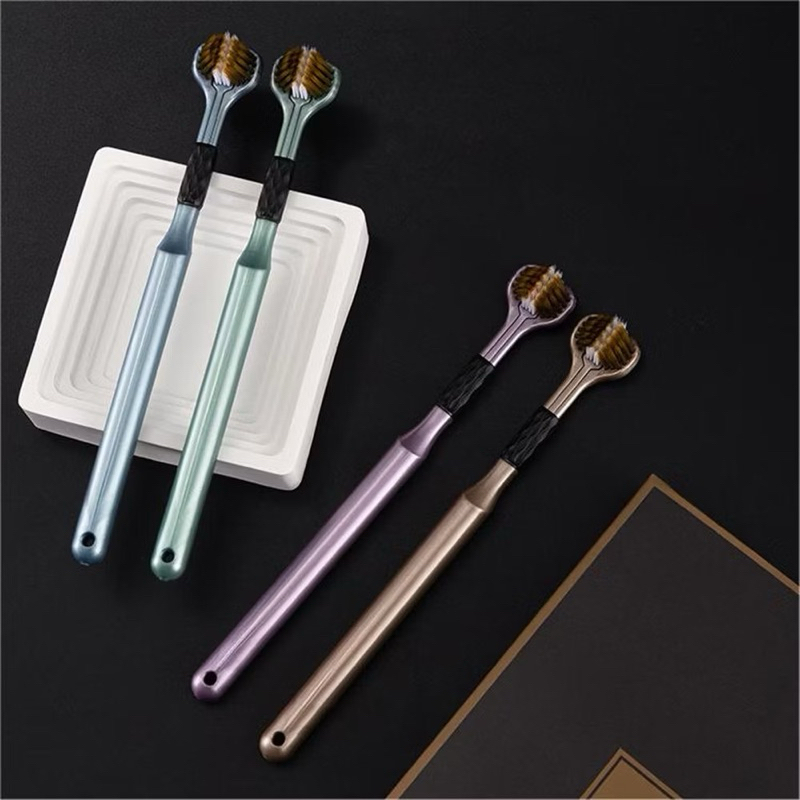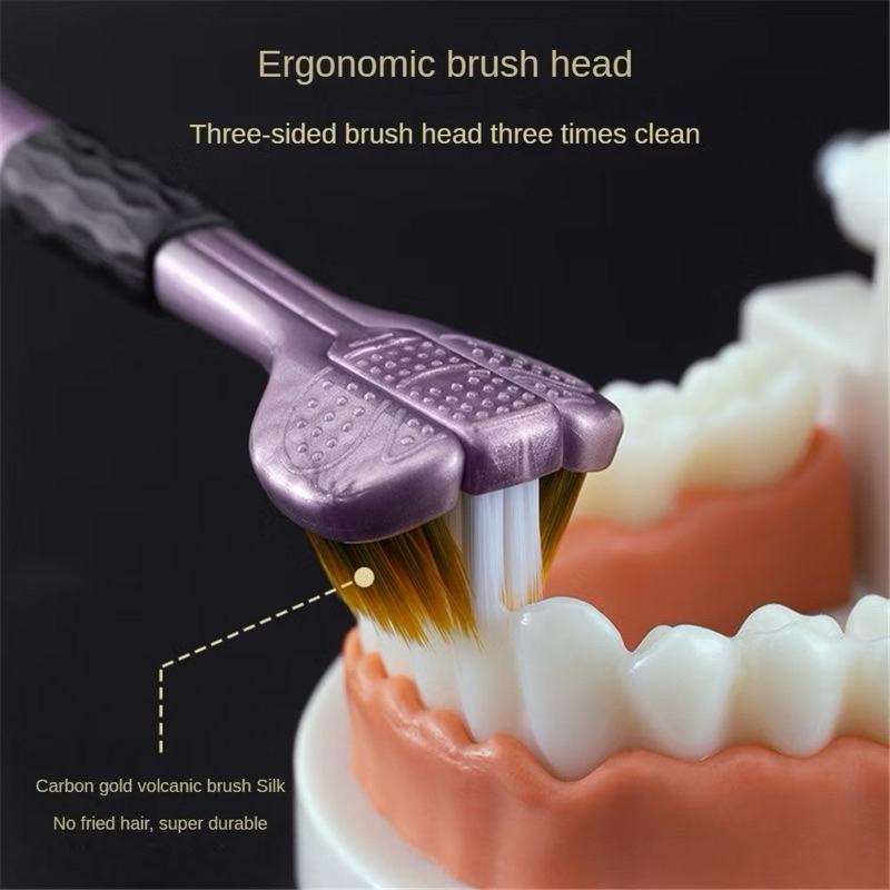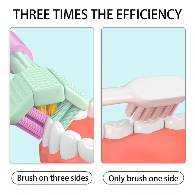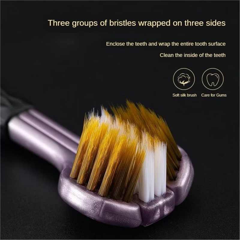 SC PrettyFloral~3D Adult 360° Wraparound Cleaning Three Sided Soft Toothbrush Three Head Toothbrush