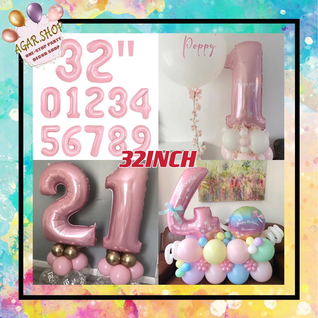 Agar.Shop 32INCH Light Pink Foil Balloon Big Number Foil Balloon Birthday Party Decoration Supply