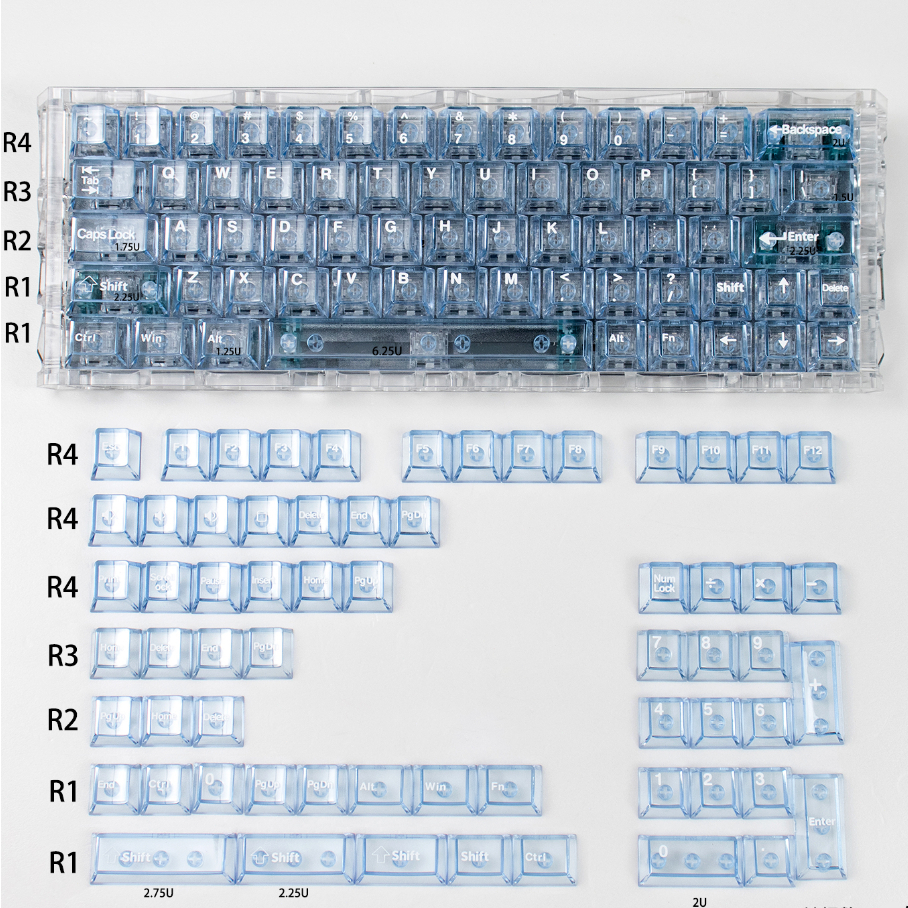 AiFei 114 Keys Crystal transparent keycaps Cherry Profile RGB Backlit Keycap With Numberpad for Gateron Mx Switches Gaming Mechanical Keyboard
