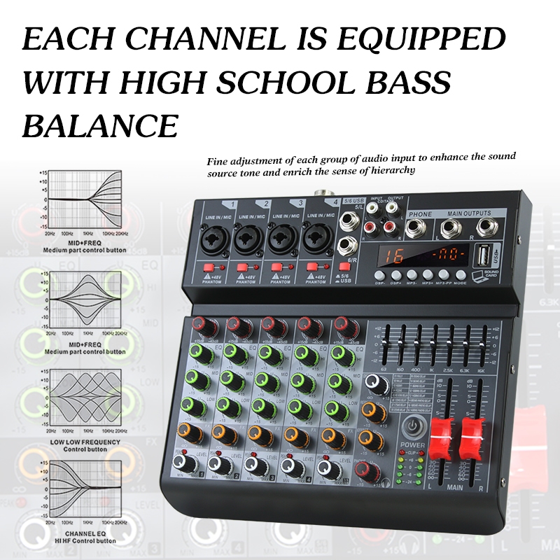 Aibedo RV mixer 4 channels 6 channels DJ mixer Bluetooth USB DSP recording equipment singing KTV equ