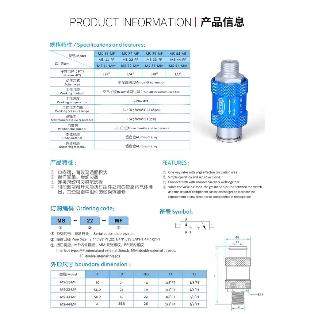 Air Flow Controler Manual Slide Valve Easy Hand Operated Slide Valve HSV-06 08 10 15 bsp