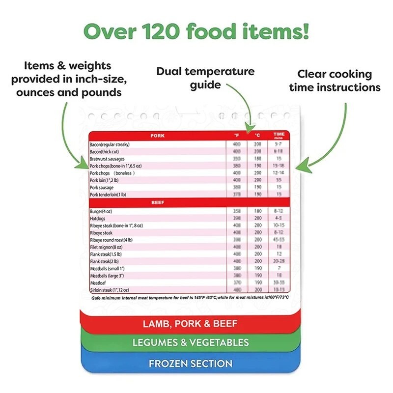 Air Fryer Magnetic Sheet Cooking Times Reference Guide For 80 Foods Flip Chart And 6 Vinyl Decal Sti