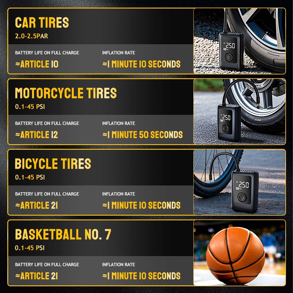 Air Pump Portable Digital 150PSI Rechargeable Electronic air compressor for bike motorcycle car