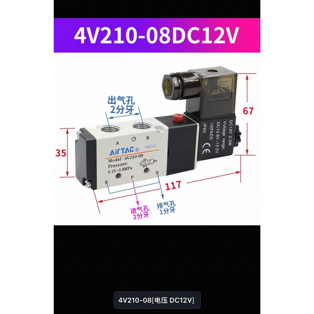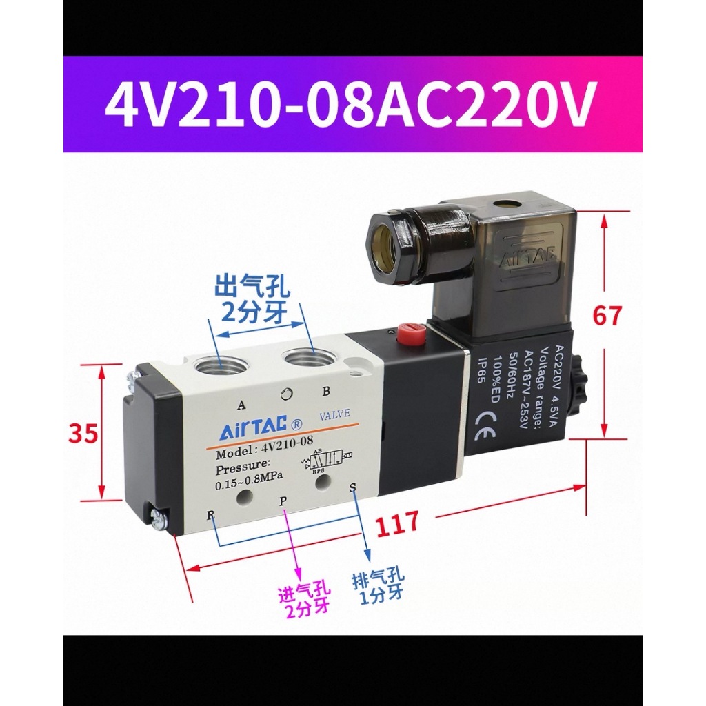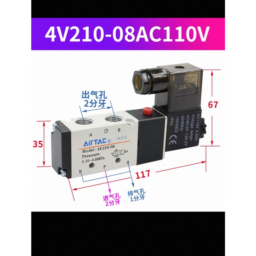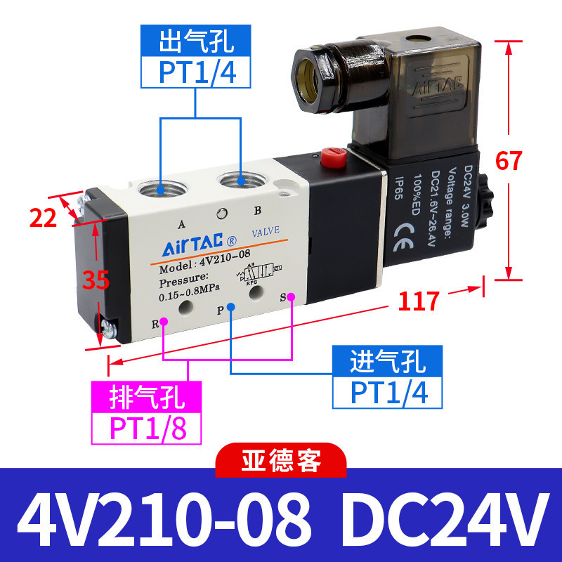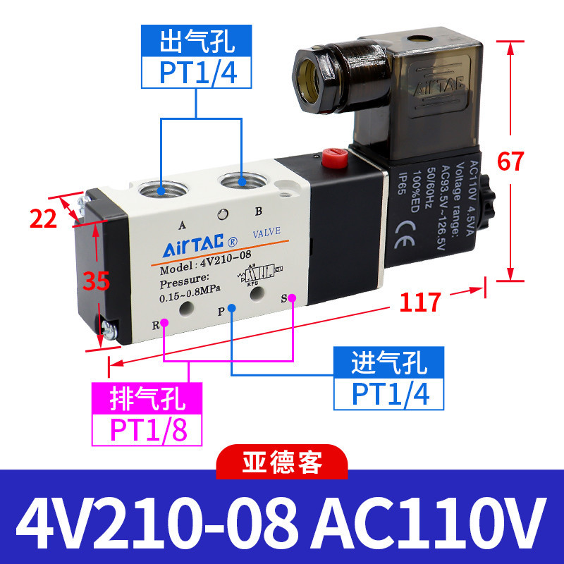 Air Tac Airtac Solenoid Pneumatic Valve 4V210-08 220V/24V/12V/110V Controller Valve Reversing Valve Electronic Valve Coil