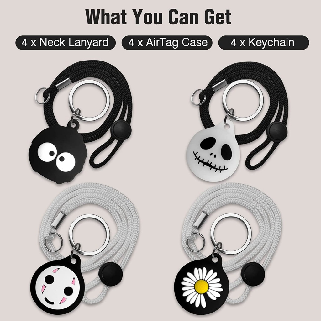 AirTag Holder for Kids Cute Cartoon Airtag Necklace Keychain for Kids ; Adults, Soft Silicone Cover for AirTags with Key Ring