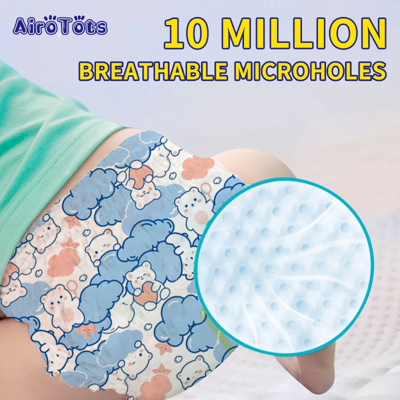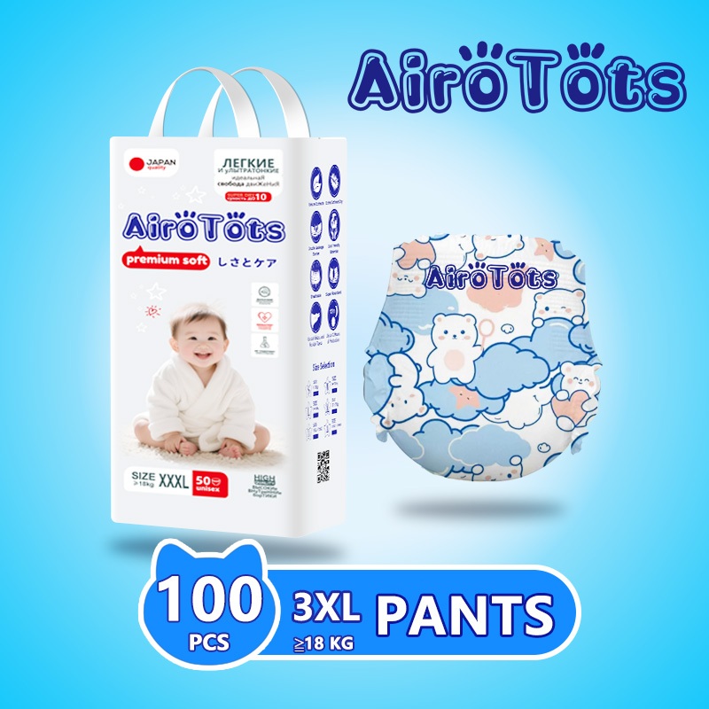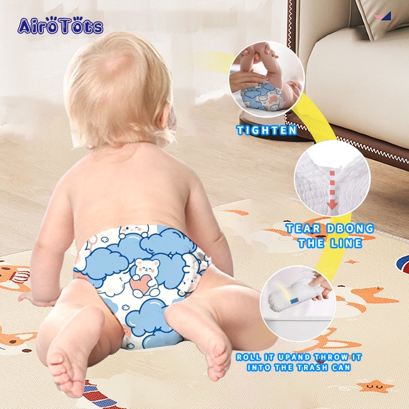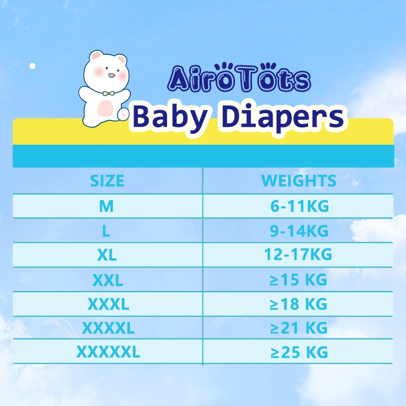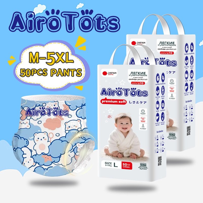 AiroTots 50PCS Q Shape Baby Diapers Pants Ultra Thin Skin Friendly M L XL 2XL 3XL 4XL 5XL Size