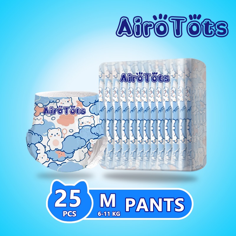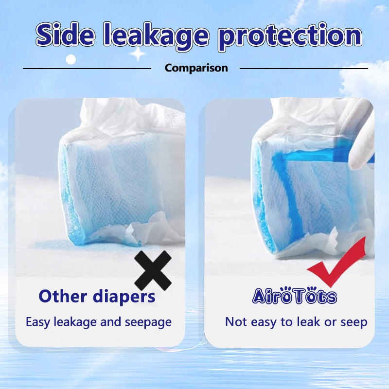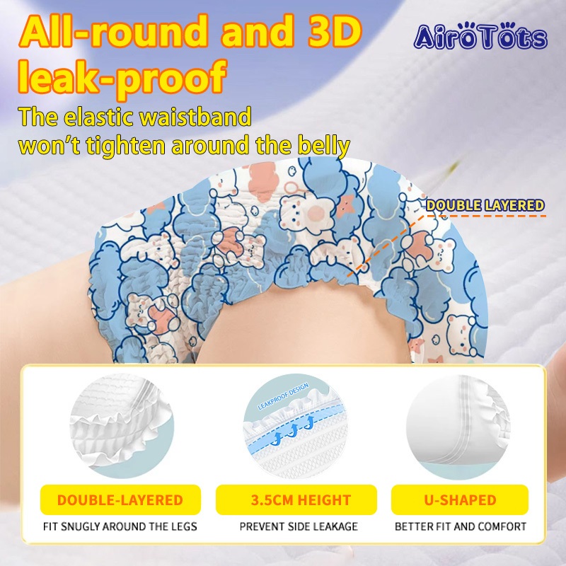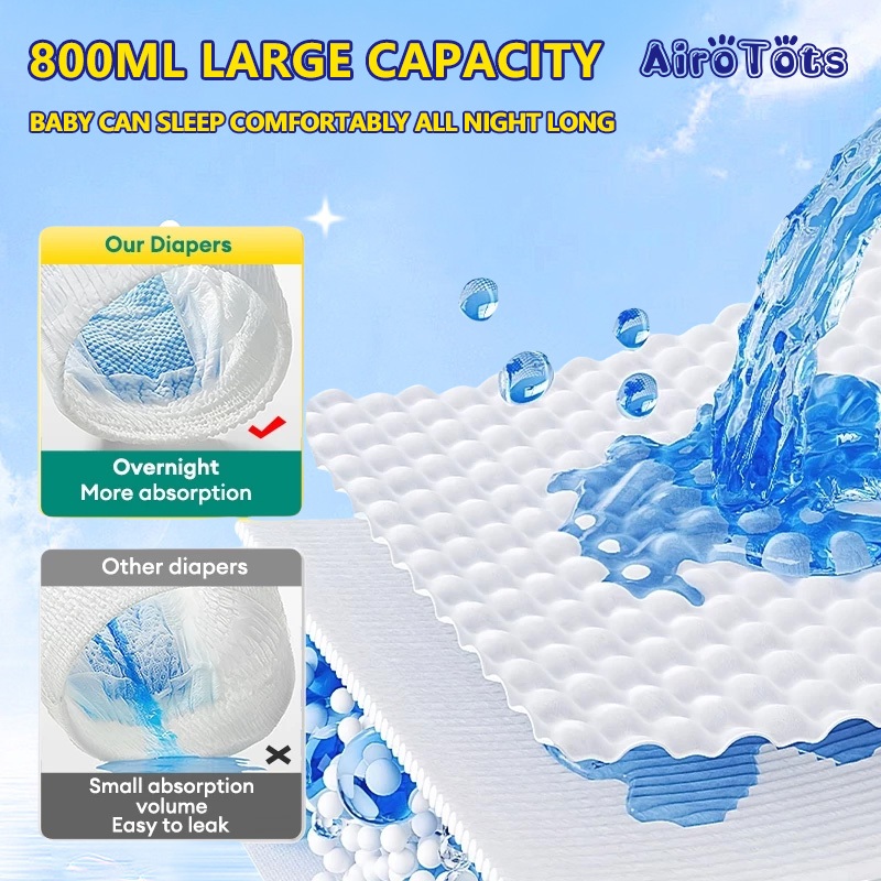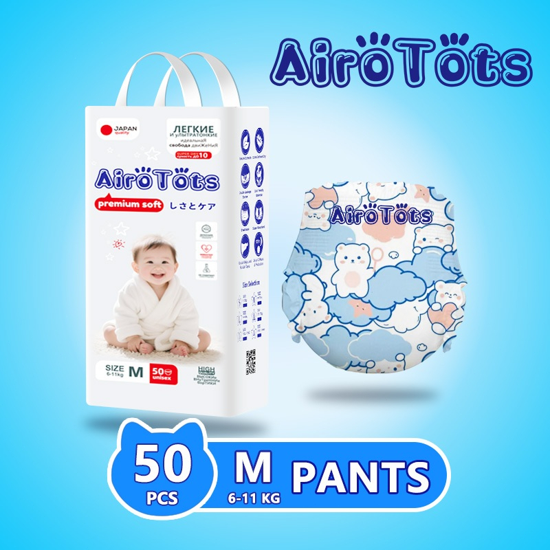 AiroTots 50PCS Q Shape Baby Diapers Pants Ultra Thin Skin Friendly M L XL 2XL 3XL 4XL 5XL Size