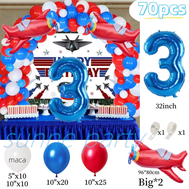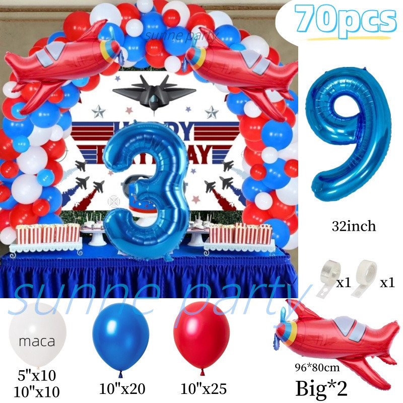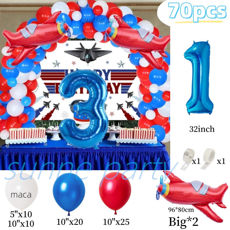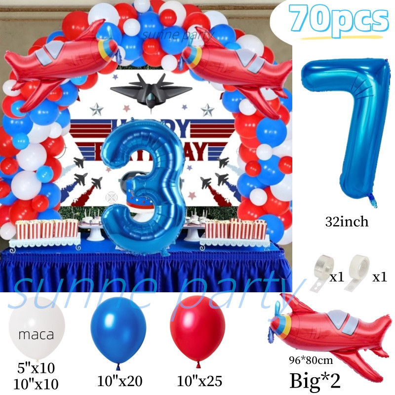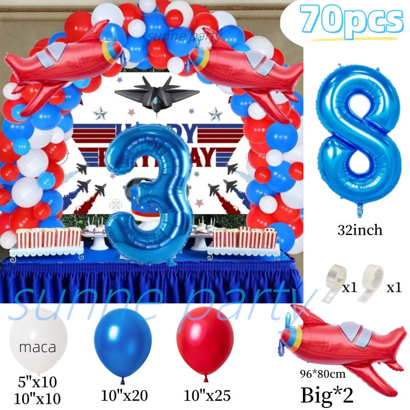 Airplane Theme Party Balloons Garland Arch Kit 32inch Blue Number Balloon The Airplane Adventure Baby Shower Birthday