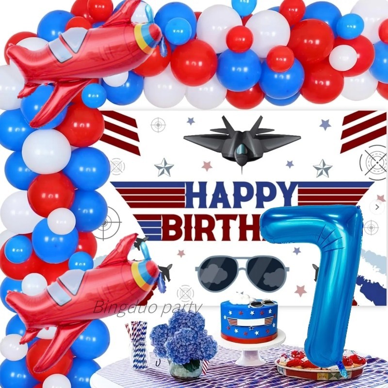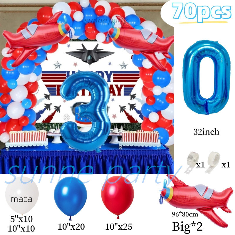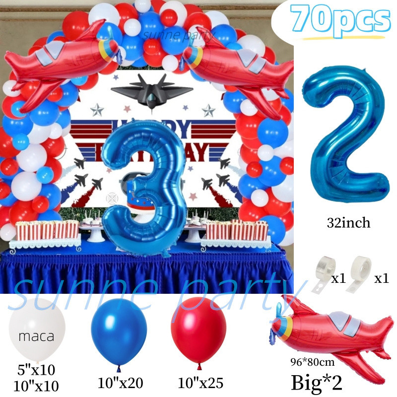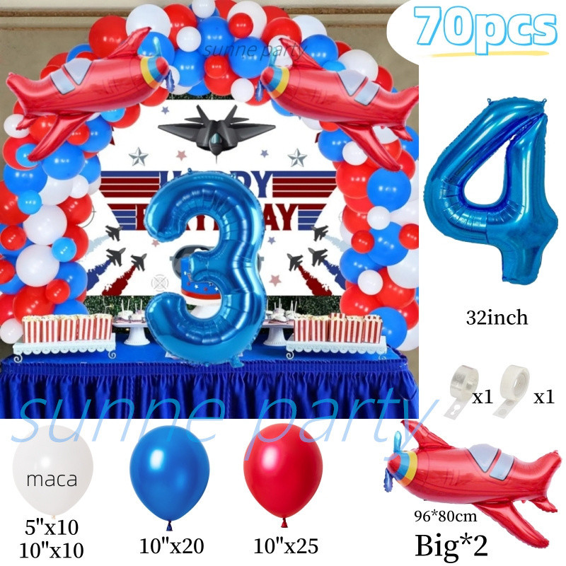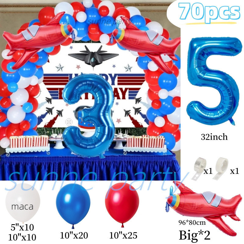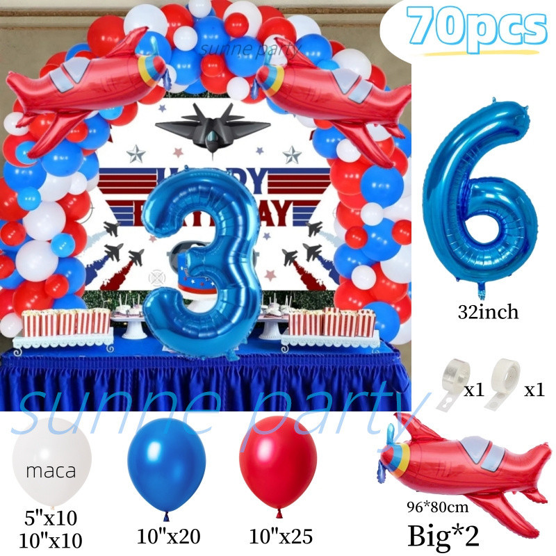 Airplane Theme Party Balloons Garland Arch Kit 32inch Blue Number Balloon The Airplane Adventure Baby Shower Birthday