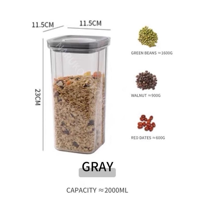 Airtight Dry Food Container Jar Canister Transparent Storage Kitchen Pantry (PET Plastic)