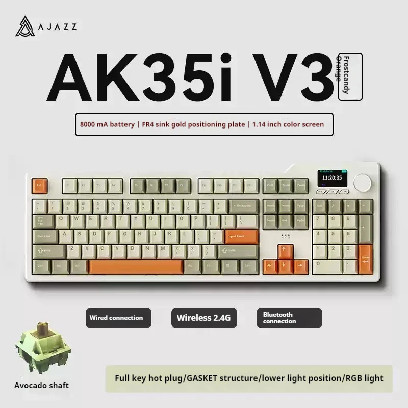 【Local Delivery】Ajazz AK35i V3 Wired and Wirless 3mode Mechanical Keyboard 104keys Full-key Hot Swappable with Knob and Display Five Layer Noise Reduction for Gaming and Office