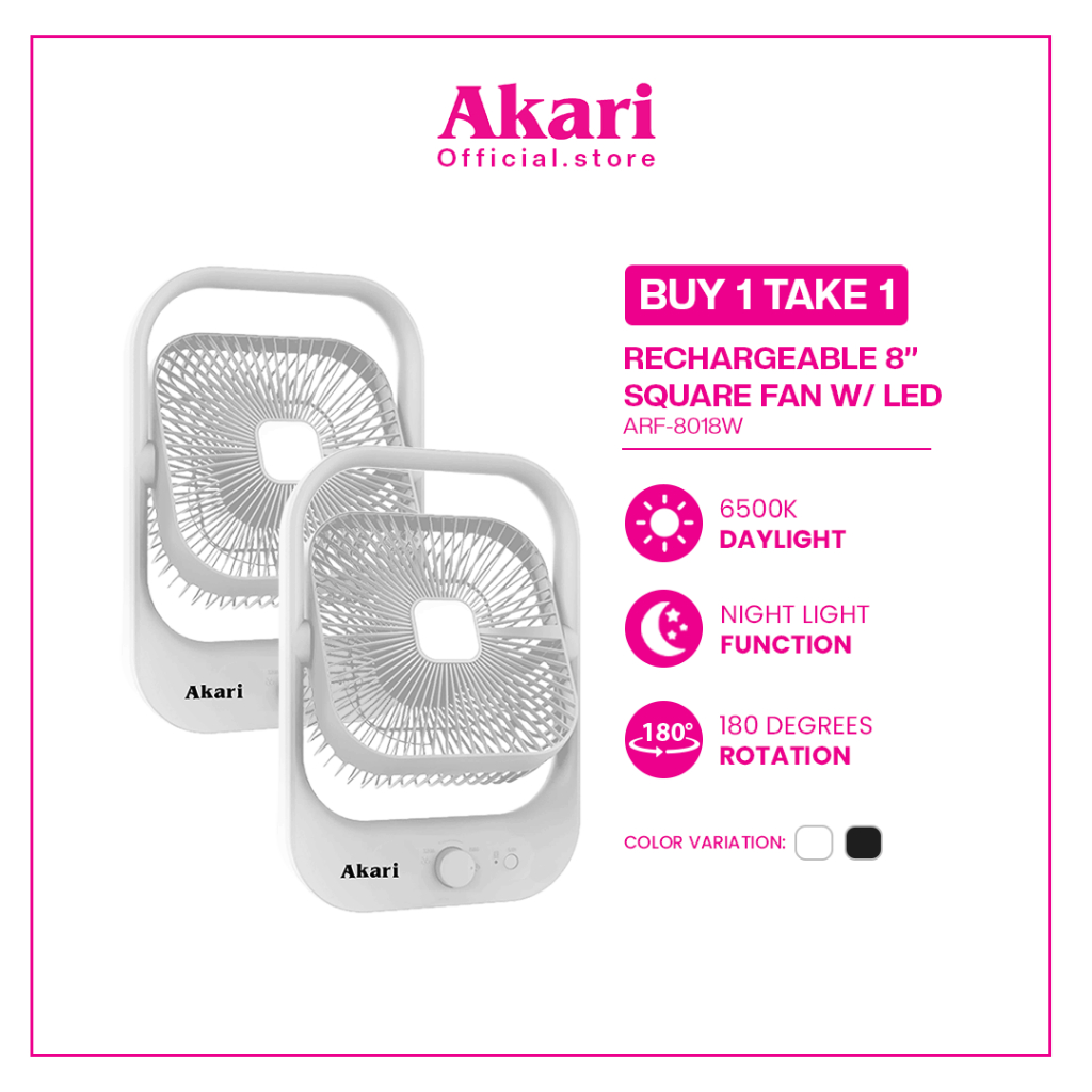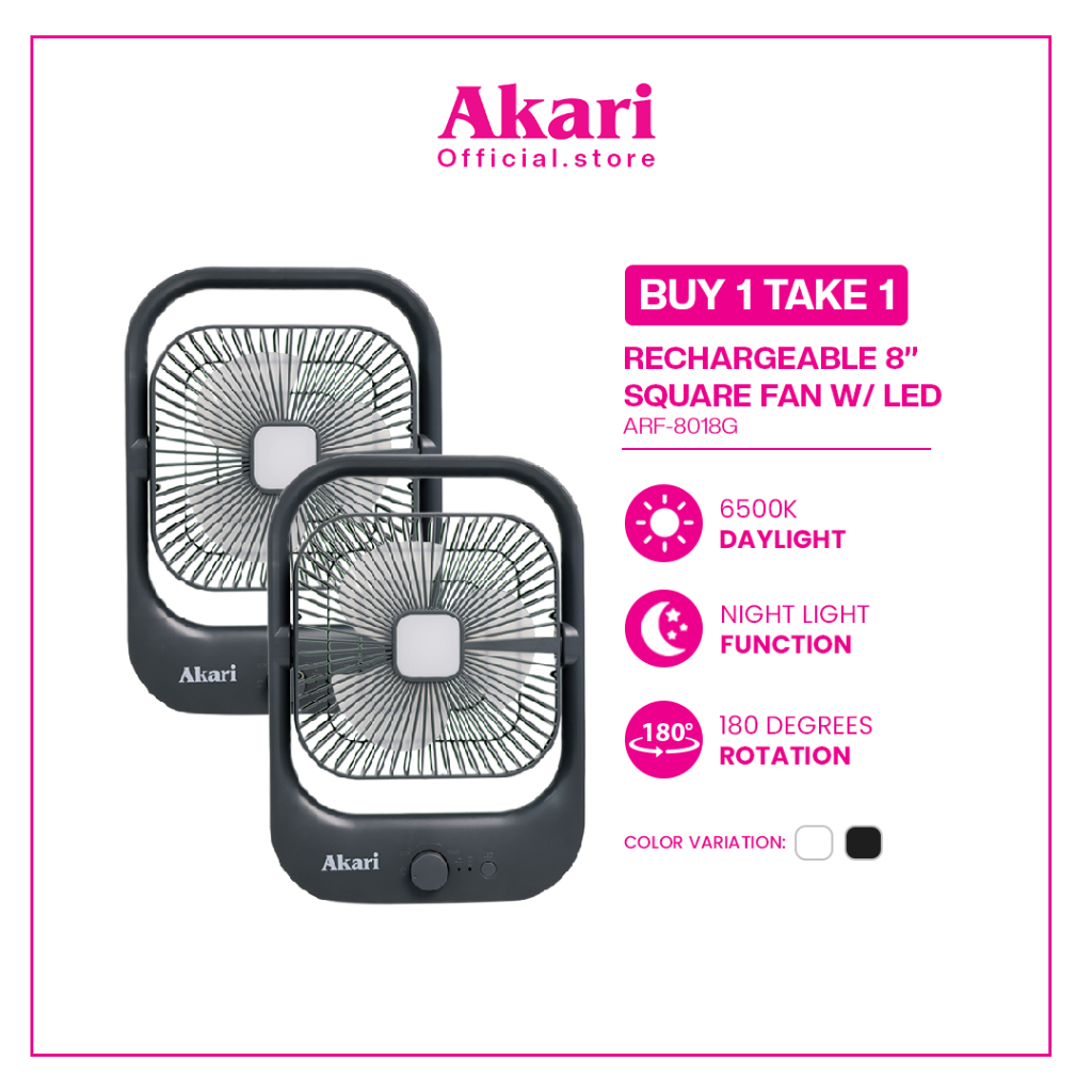 Akari BUY 1 TAKE 1 Rechargeable Square Fan with Emergency LED Light (ARF-8018)
