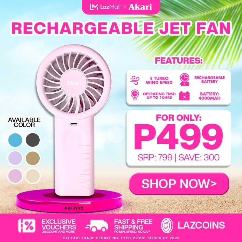 Akari Compact Portable Handheld Rechargeable Fan With 5 Turbo-Speed, 4000Mah Battery, And Long