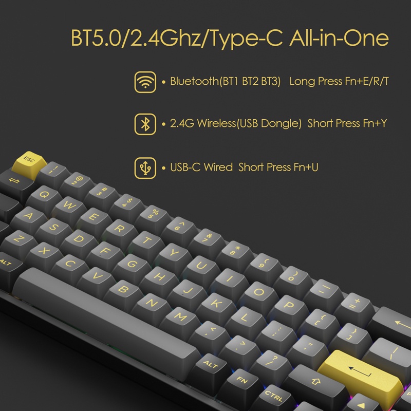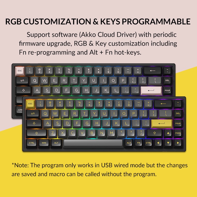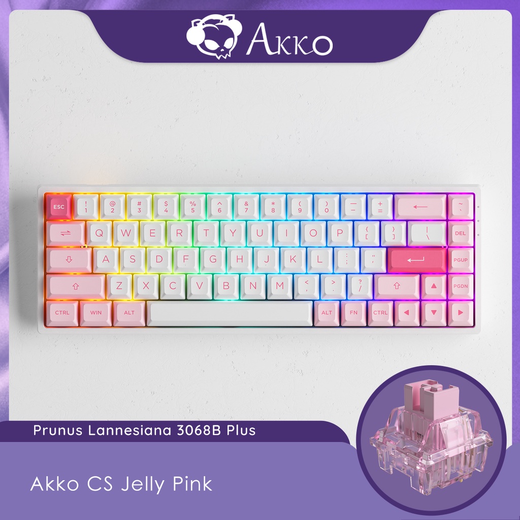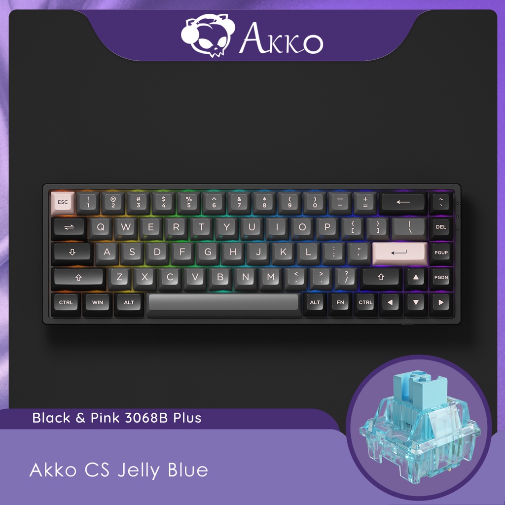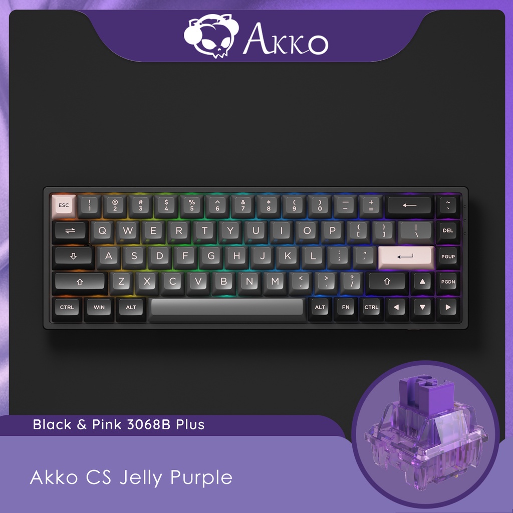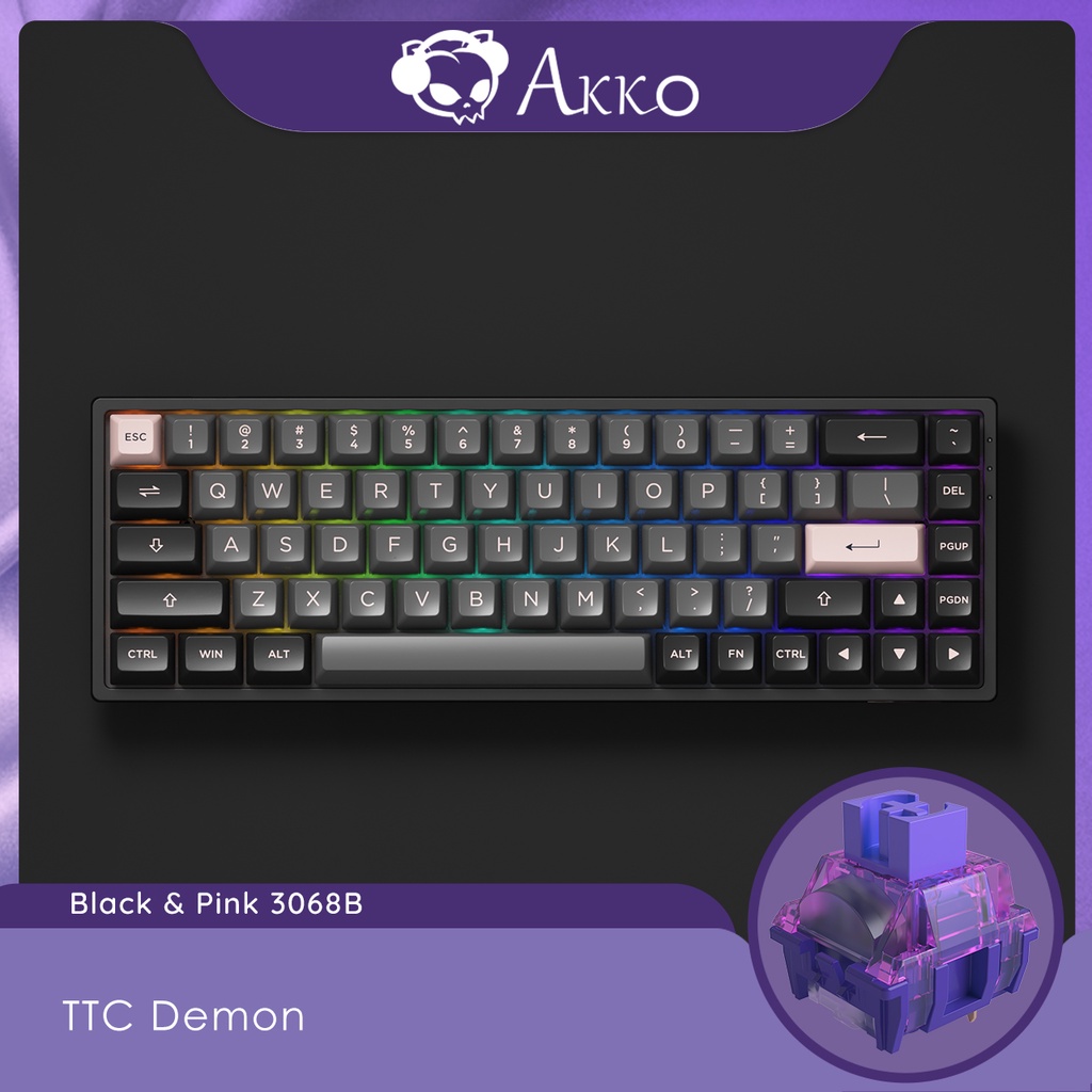 Akko 3068B/3068B Plus Black & Pink Wireless RGB Hot-swappable Mechanical Keyboard, Wired/Bluetooth, PBT Double-Shot ASA Keycaps