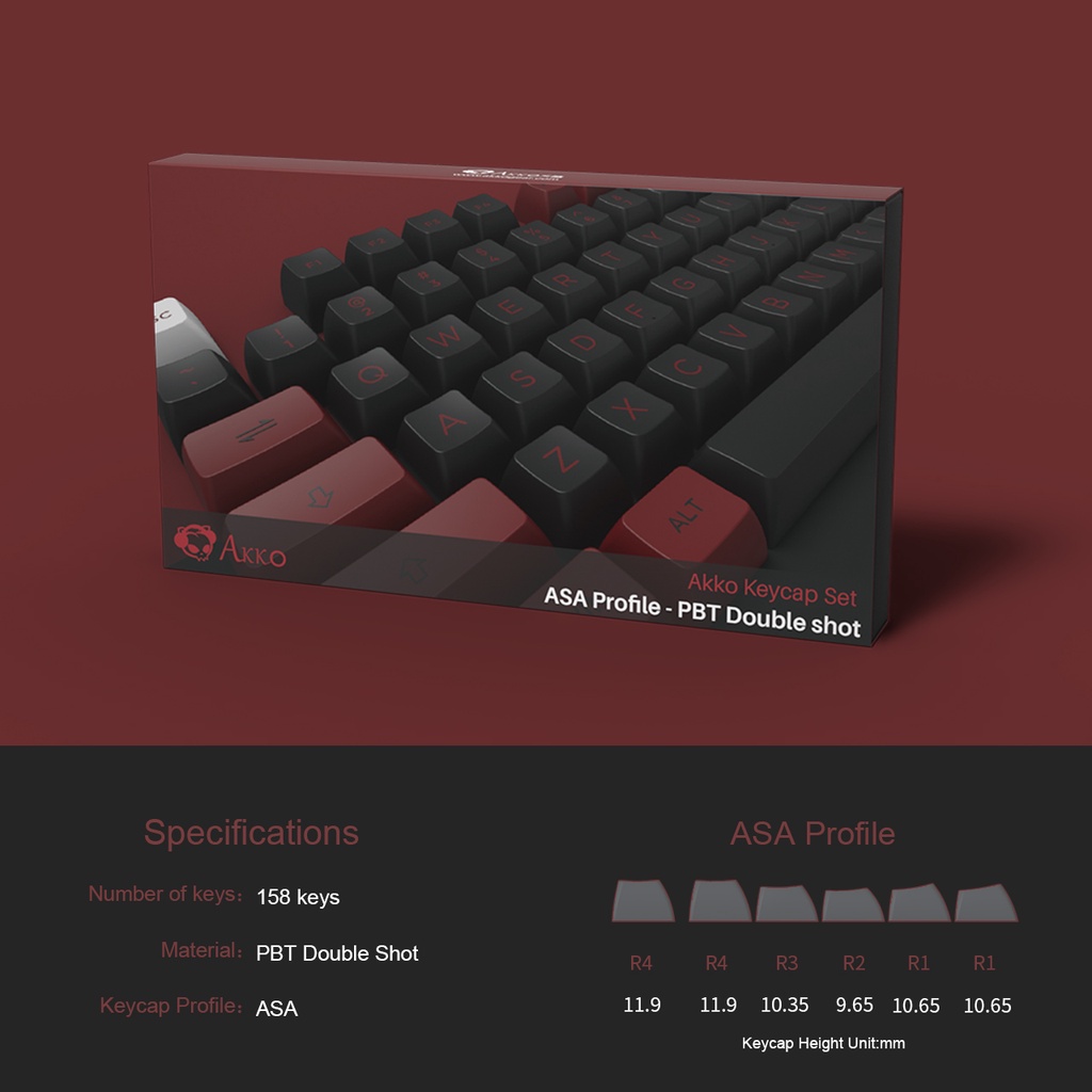 Akko Bred Full Keycap Set with 158-keys, ASA Profile, Durable PBT Double-Shot Key Caps, 6.25u / 7u Spacebar