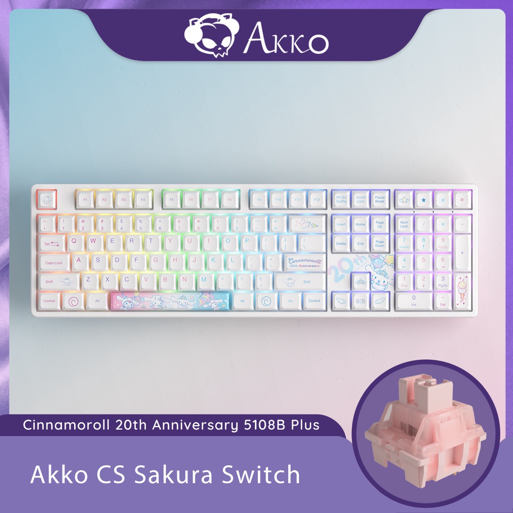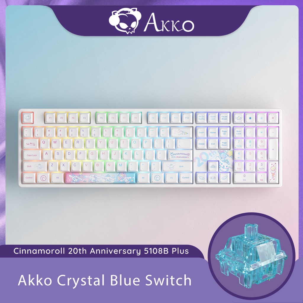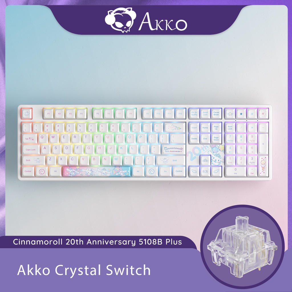 Akko Cinnamoroll 5108B Plus RGB Wireless Mechanical Gaming Keyboard 108-key with JDA Dye-sub PBT Keycaps, USB-C Wired & Bluetooth, Full Sized LED Keeb
