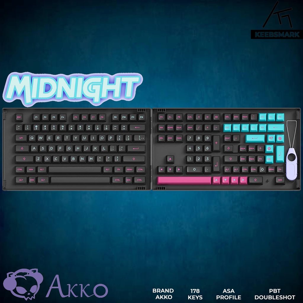 Keycaps Akko Midnight 178 Keys ASA Profile PBT Doubleshot Keycaps