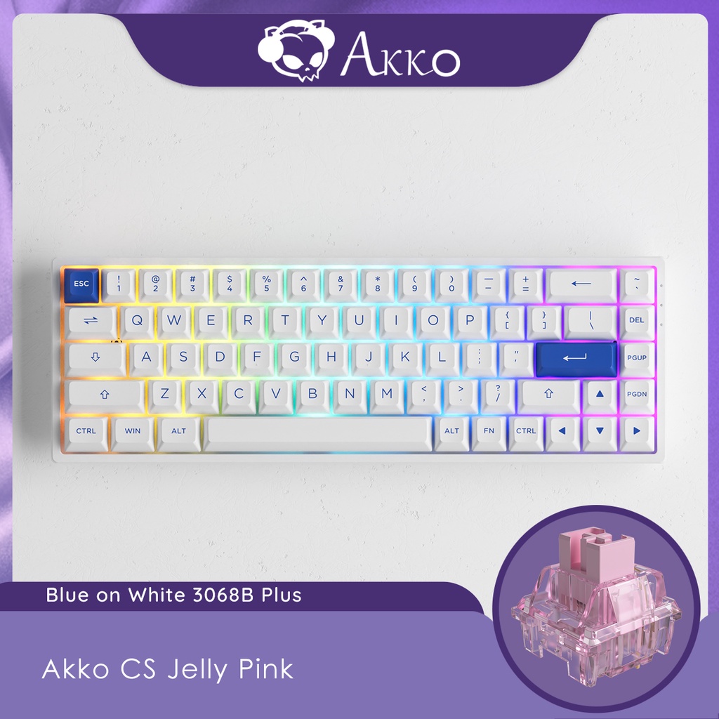Akko Rechargeable Wireless Bluetooth Backlit Mechanical Keyboard 68-Key 3068b Plus Blue-On-White Hot Swap Backlight Gaming With Pbt Keycaps