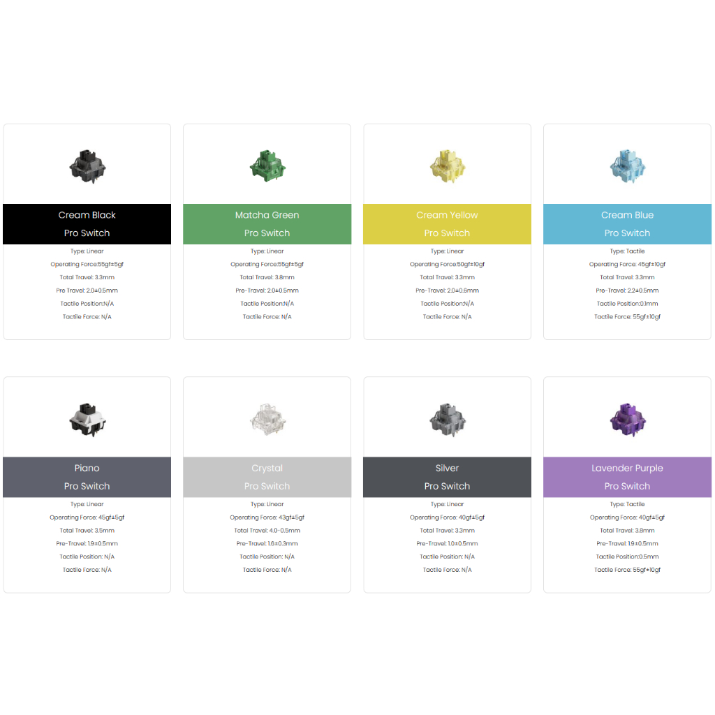 Akko V3 Pro Switches Cream Black Blue Yellow Lavender Purple Matcha Green Crystal Piano