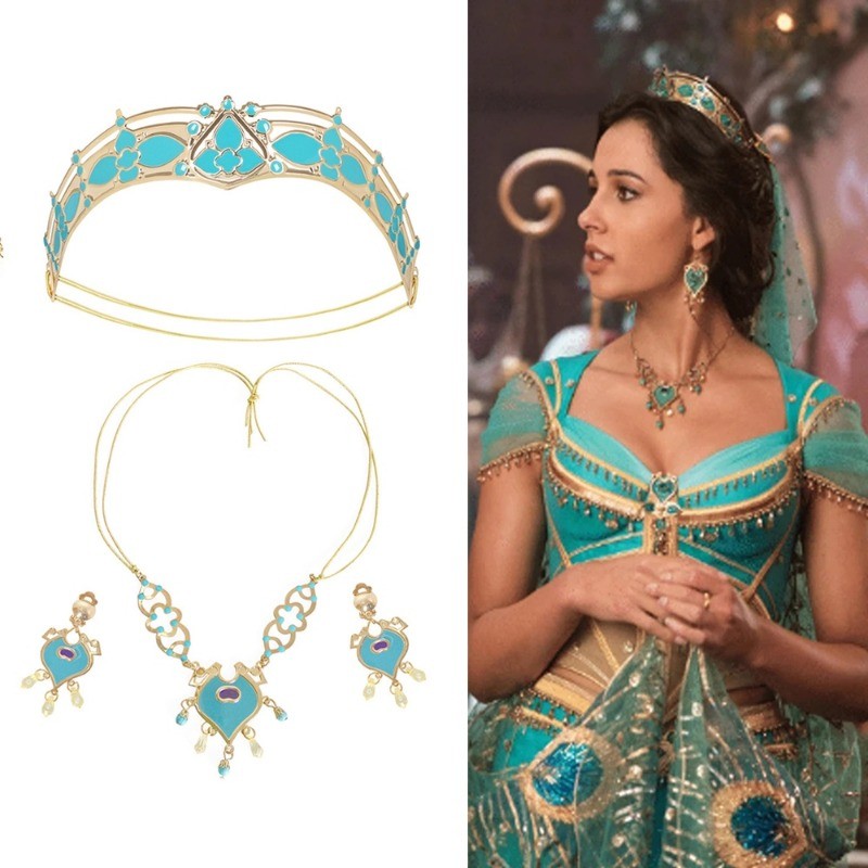 Aladdin Jasmine Princess Jewelry Accessories Set Kids Girls Cosplay Jasmine Headband Crown Dress up Halloween Christmas Party Accessories