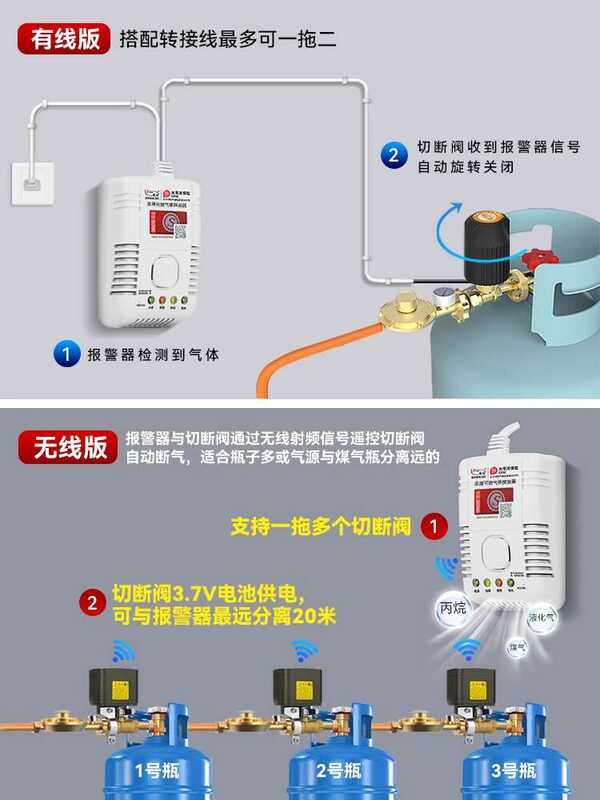 Alarm Automatic Shut-off Commercial Catering Kitchen Natural Liquefied Gas Tank Leak Safety Valve