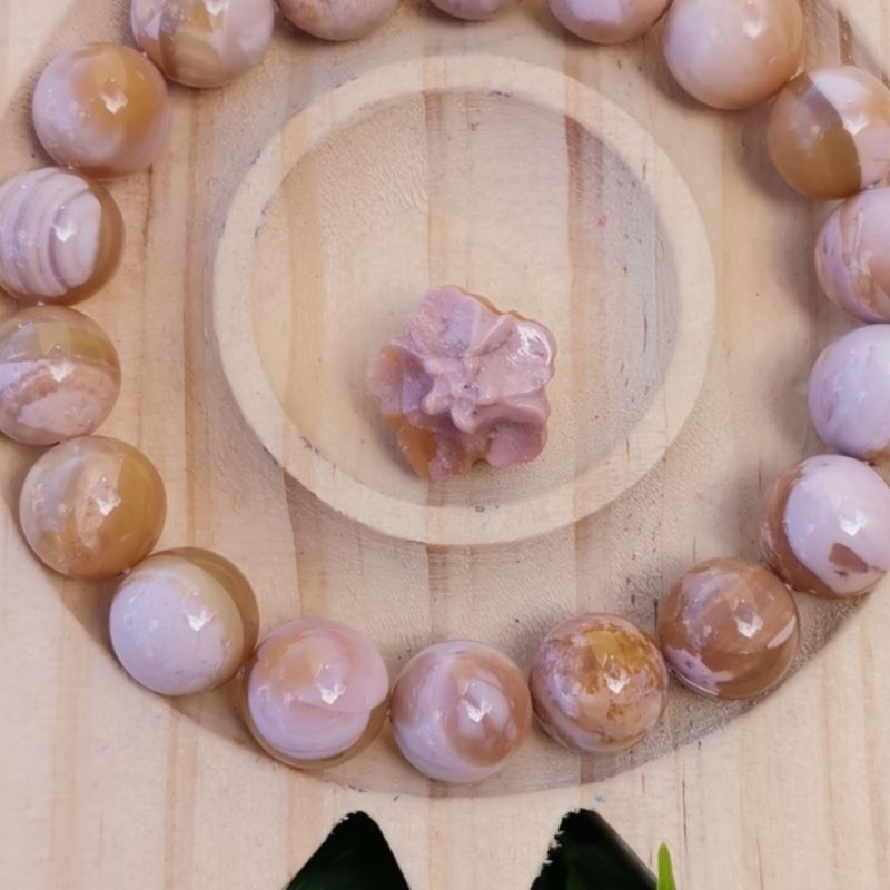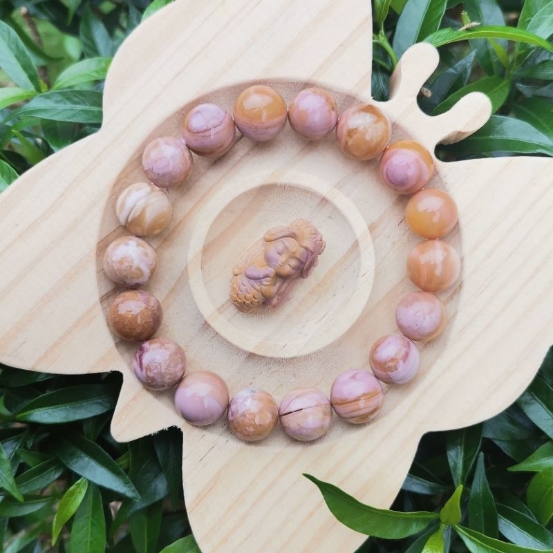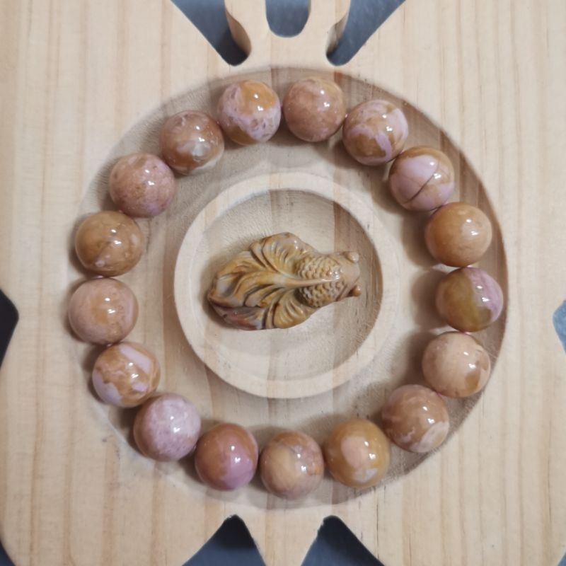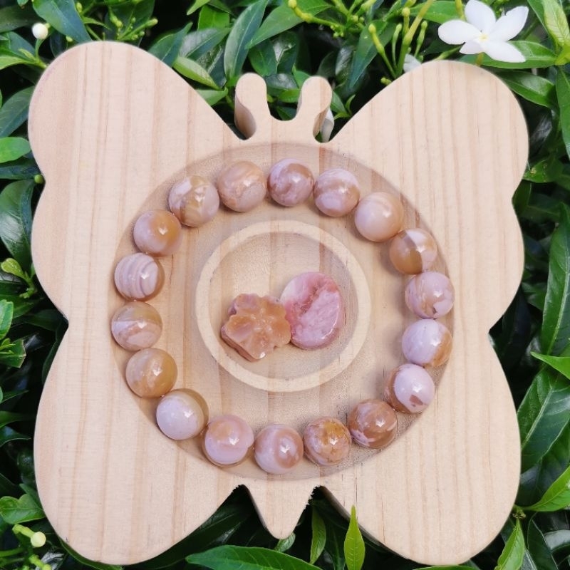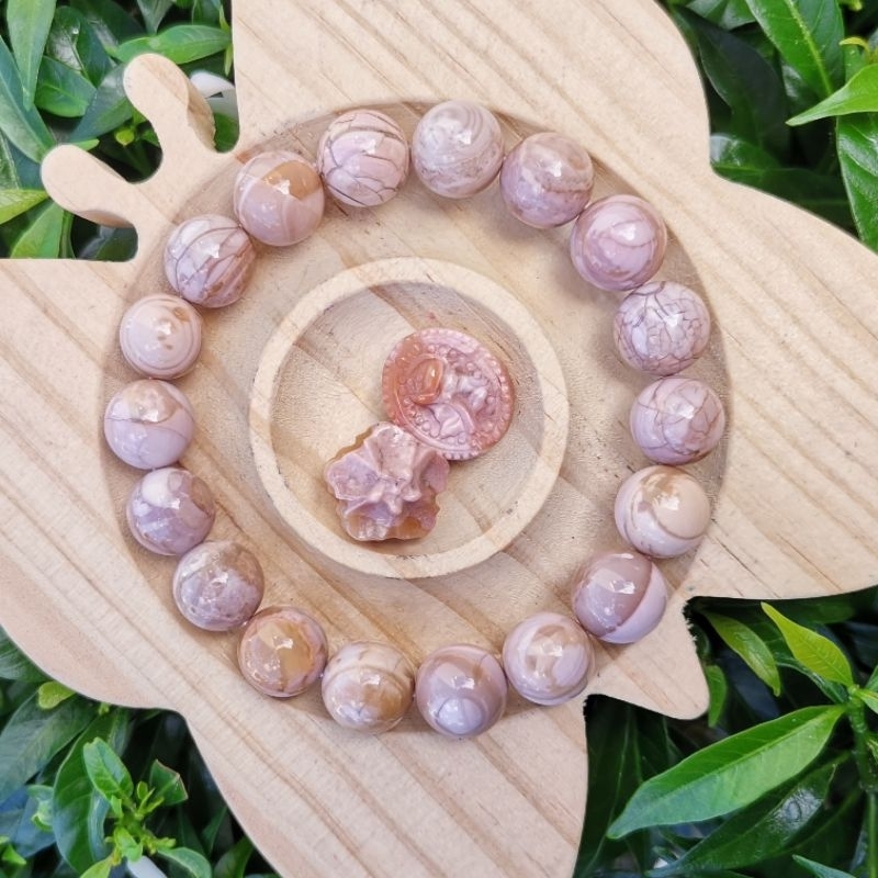 Alashan Agate Pink Mango Bracelet & Charm - Sakura Koi Fish Cat