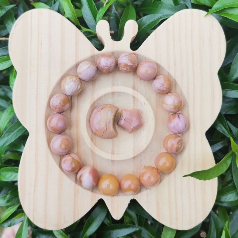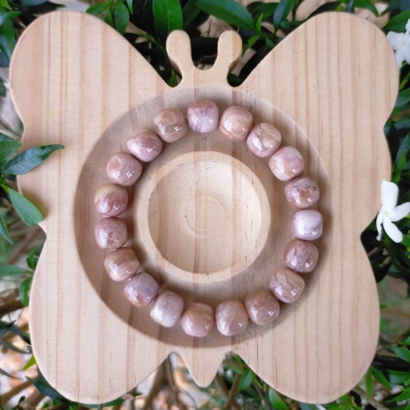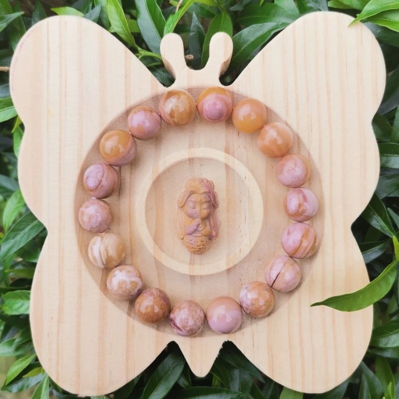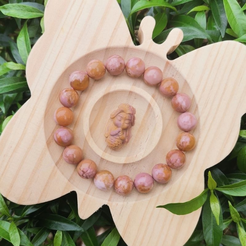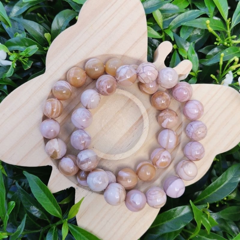 Alashan Agate Pink Mango Bracelet & Charm - Sakura Koi Fish Cat