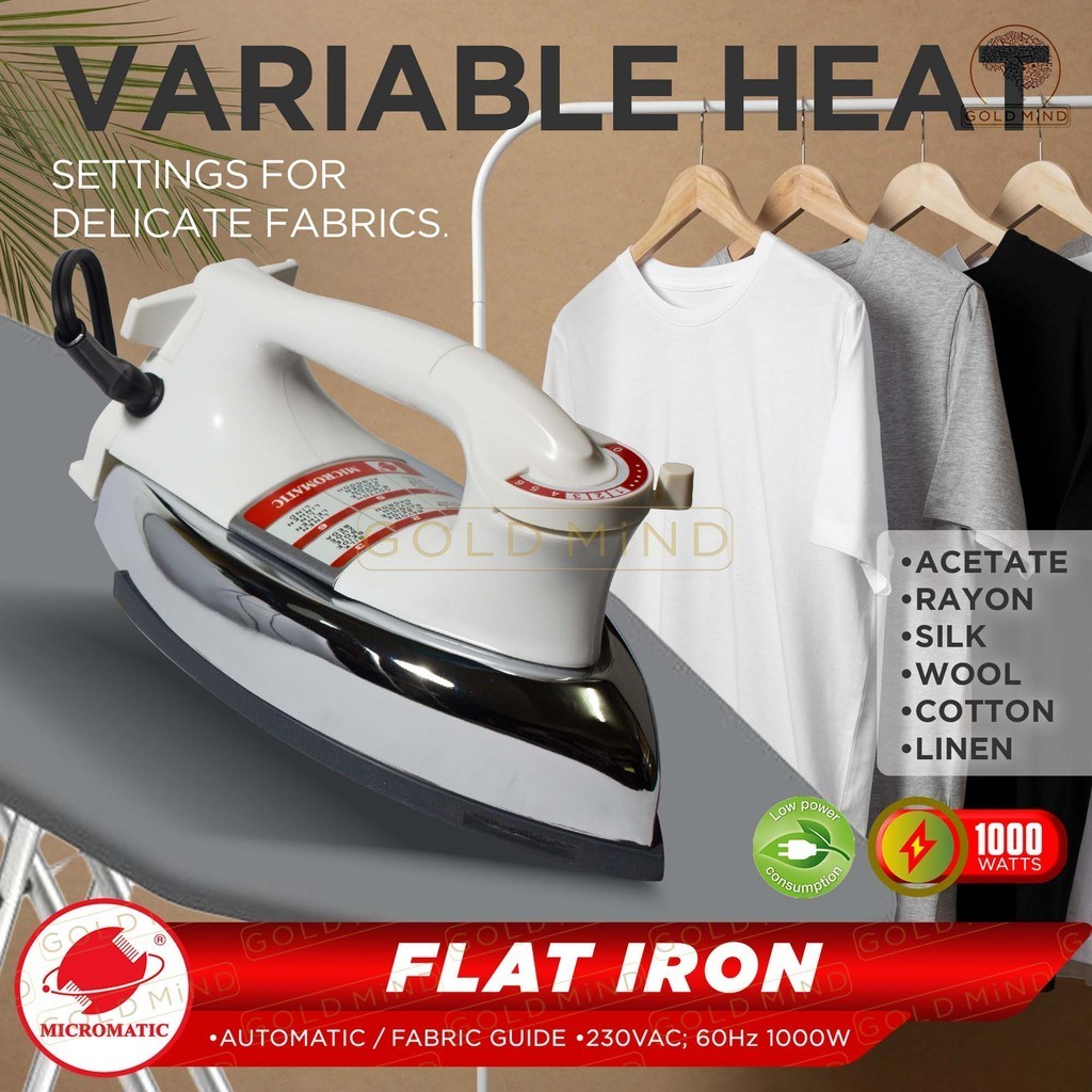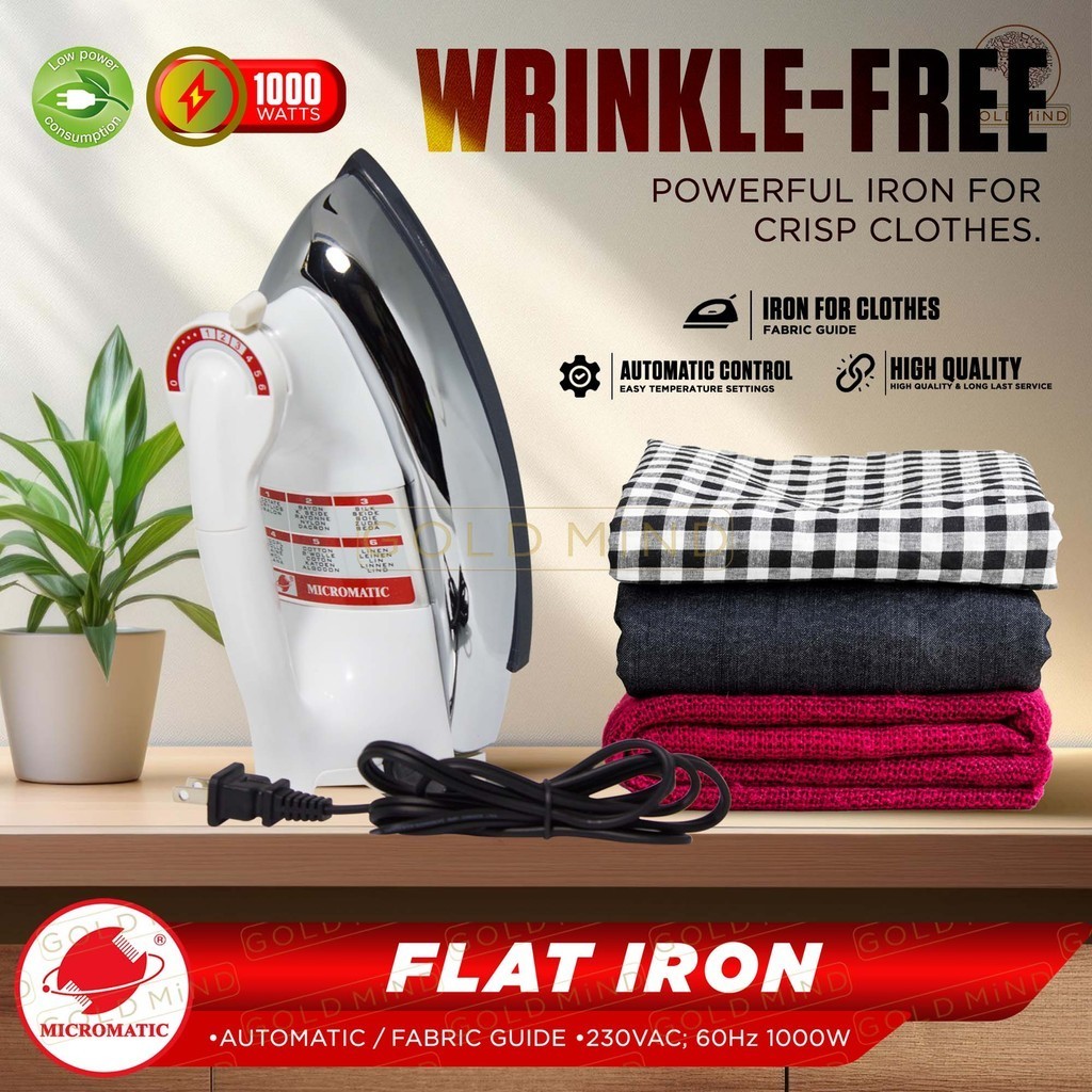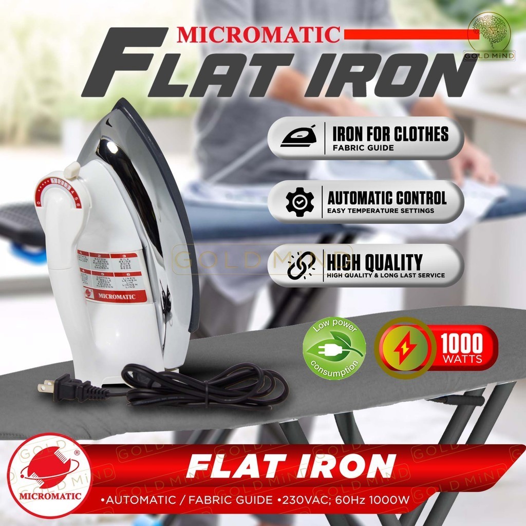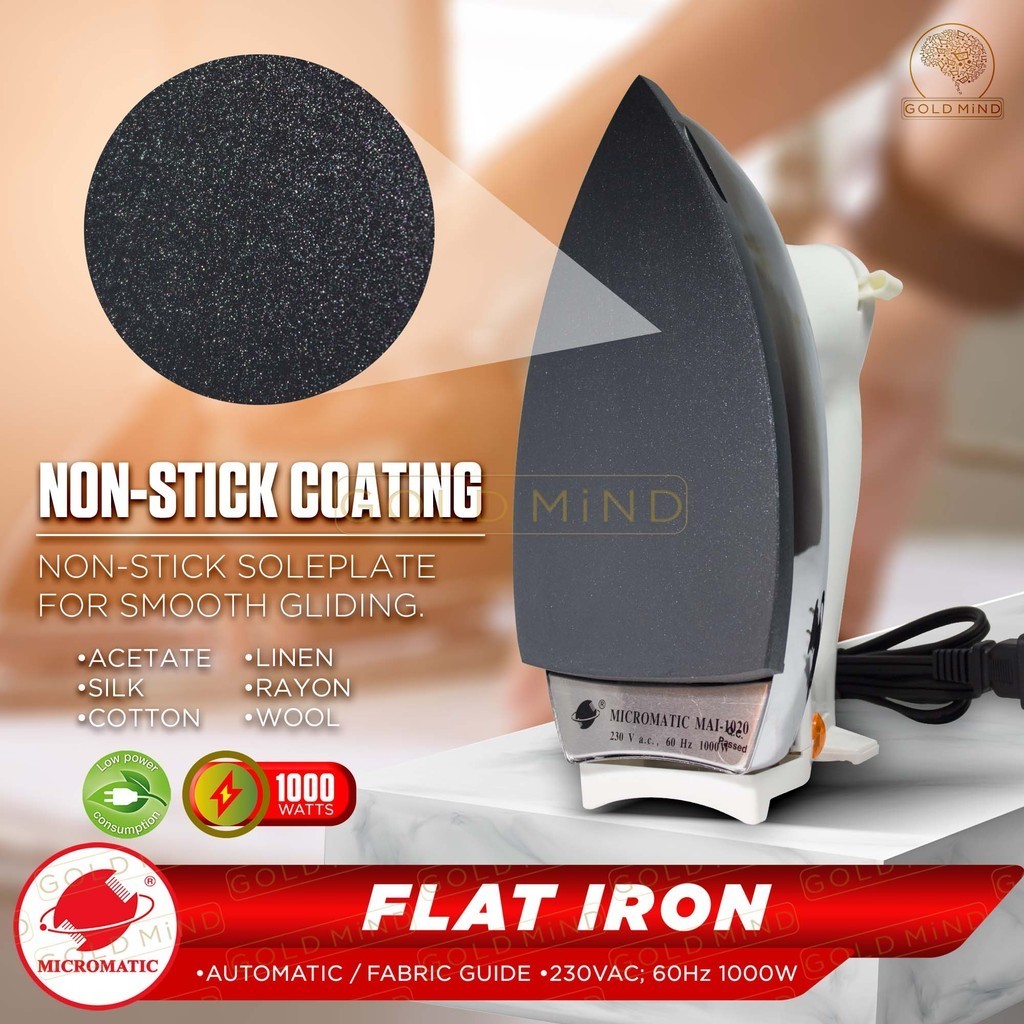 Micromatic Stainless Steel Flat Iron for Fabric Care Non:Stick Coating 1000W
