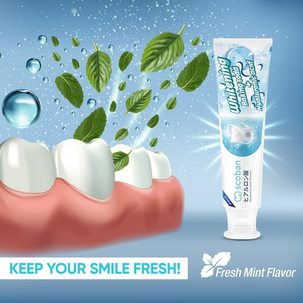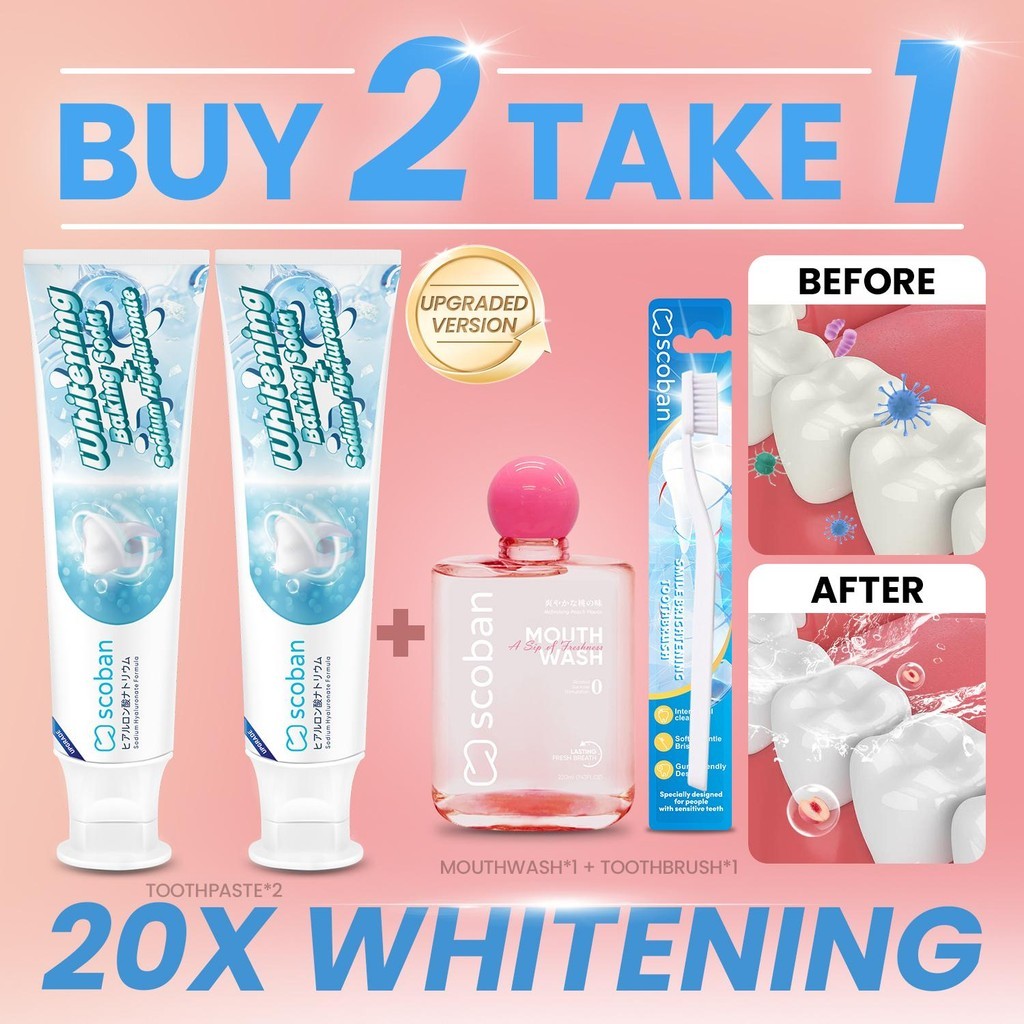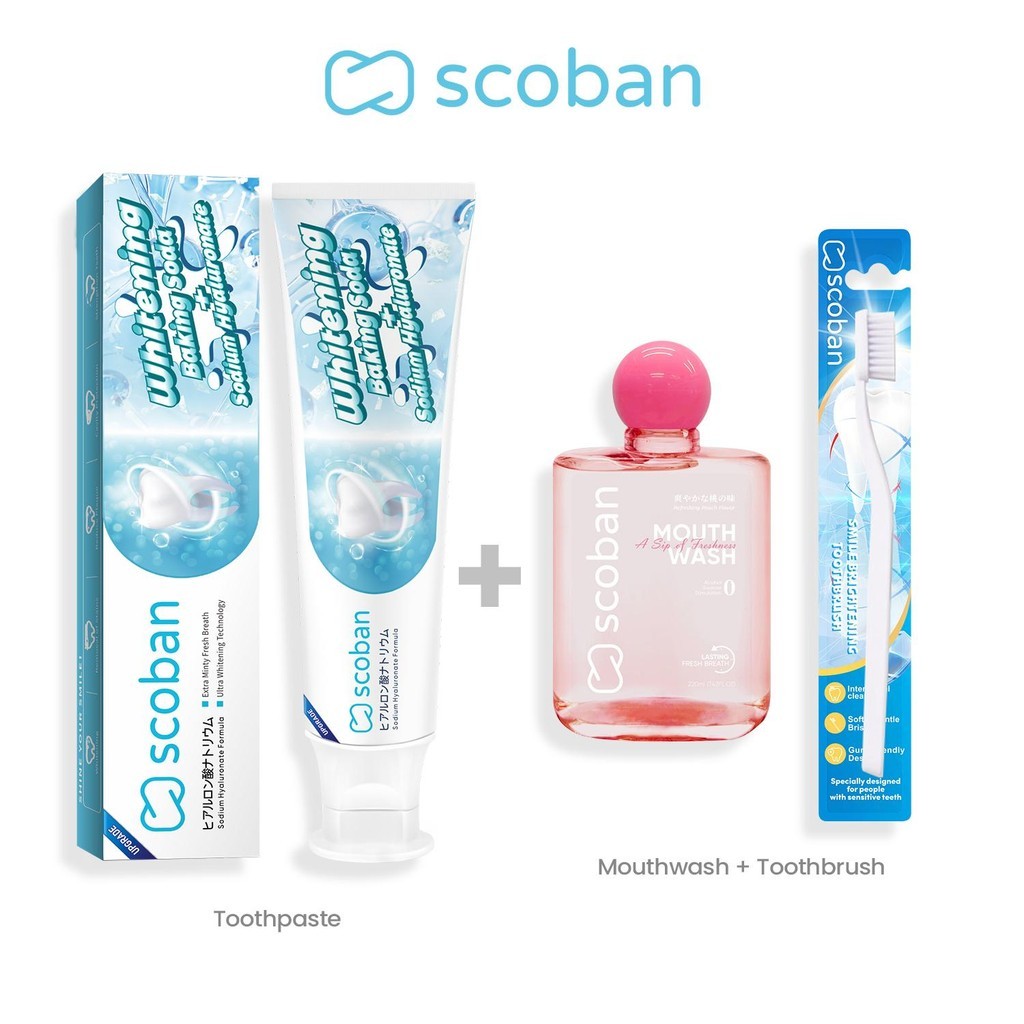 Scoban Whitening Baking Soda Toothpaste+Mint Mouthwash Long-Lasting Freshens Breath Alcohol Free